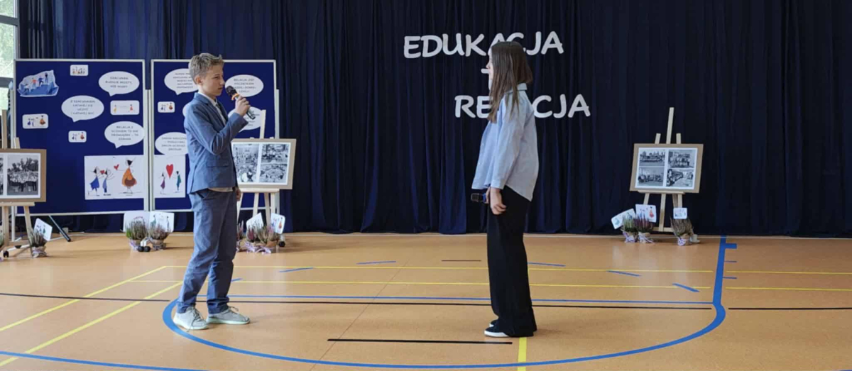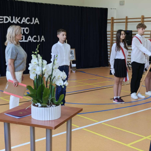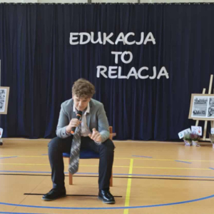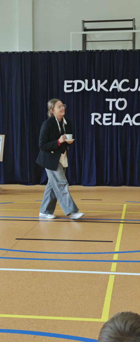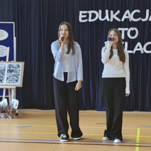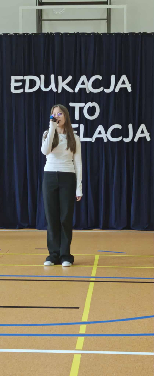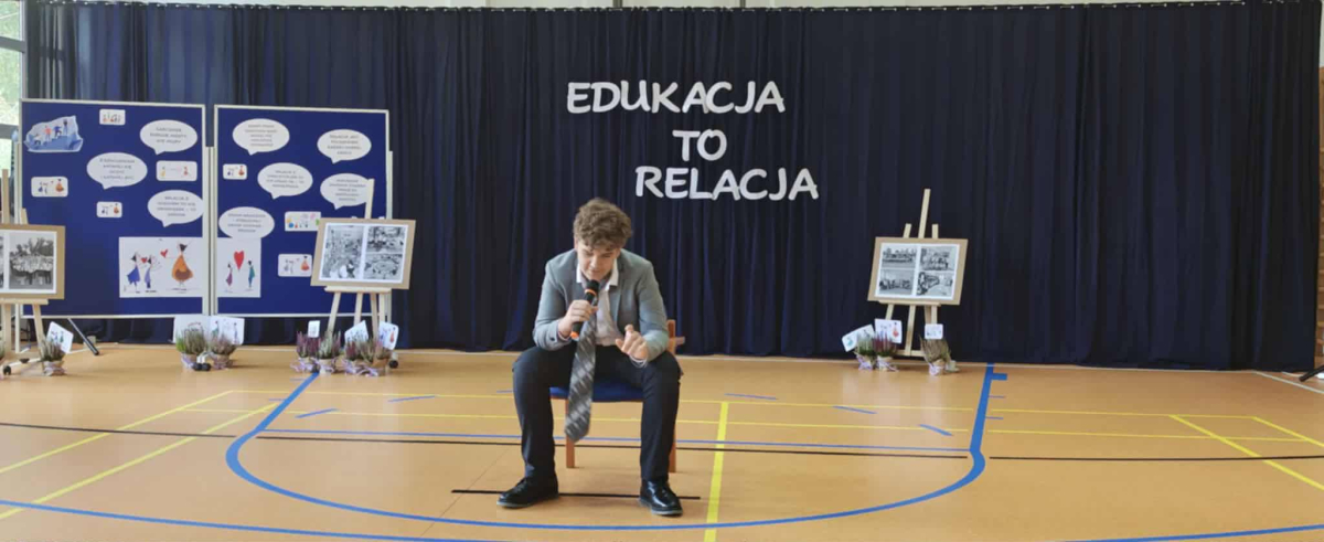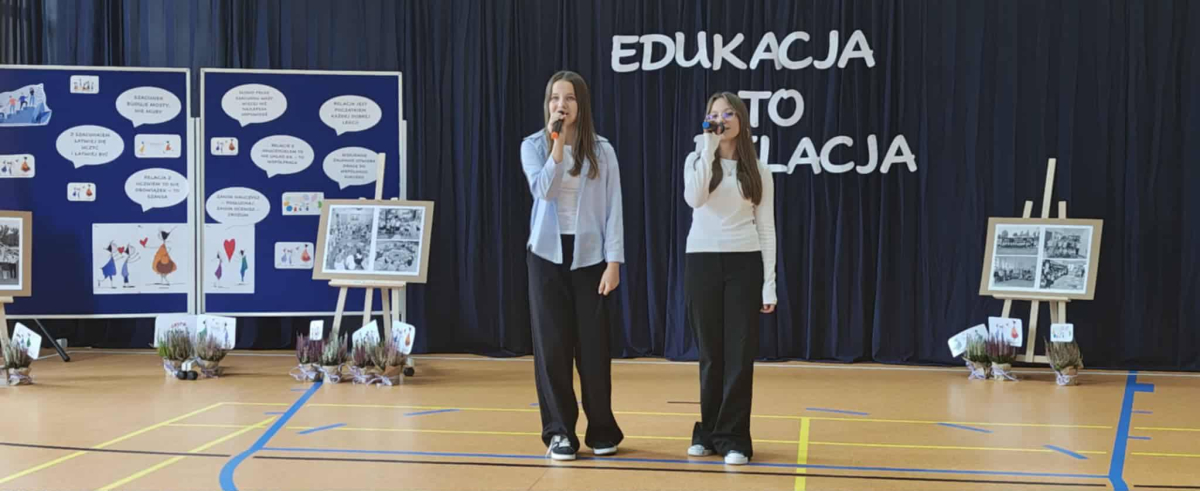 Uczniowie klasy VII i VIII pod kierunkiem Pani Ostanek i Pani Domańskiej, przygotowali poruszający montaż słowno-muzyczny pod hasłem: „Edukacja to relacja” — pełen pięknych wierszy i piosenek, który wzruszył i zachwycił wszystkich zebranych.