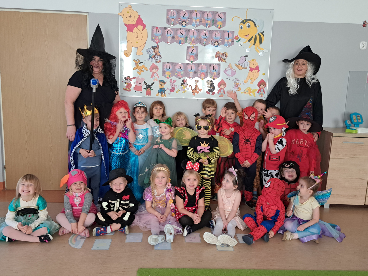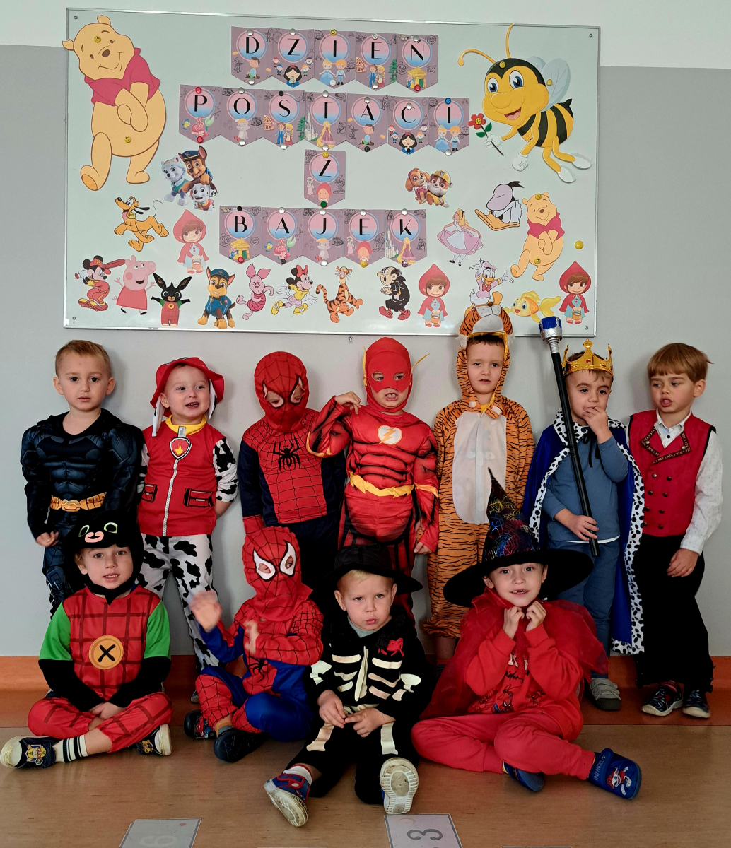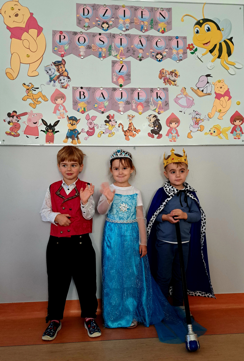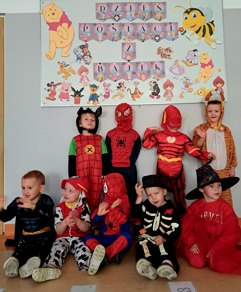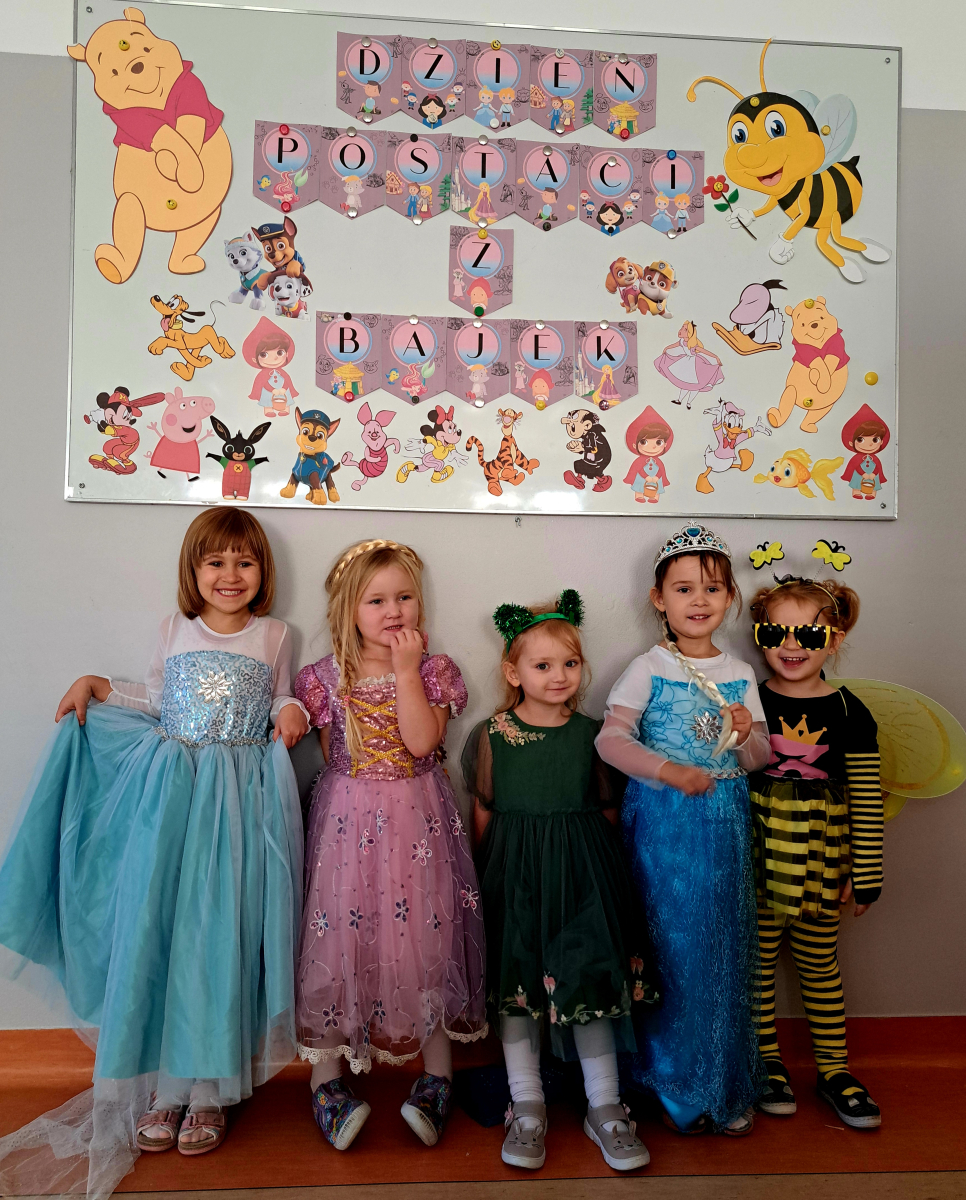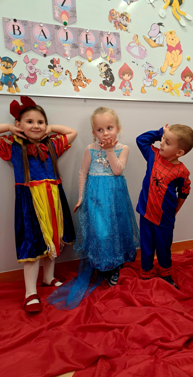 Z okazji "Dnia Postaci z Bajek" nasze przedszkole zamieniło się w prawdziwą bajkową krainę! Po salach spacerowały księżniczki, superbohaterowie, czarodzieje, wróżki, misie, tygryski i wiele innych postaci z ulubionych bajek dzieci. Były tańce wygibańce, zagadki, kolorowe prace plastyczne i mnóstwo śmiechu. Dzieci opowiadały o swoich ulubionych bohaterach, prezentowały swoje bajkowe stroje, wspólnie słuchały bajek i odkrywały, ze każda z nich niesie ważne przesłanie. To był magiczny, radosny i pełen przygód dzień, który na długo zostanie w naszej pamięci.