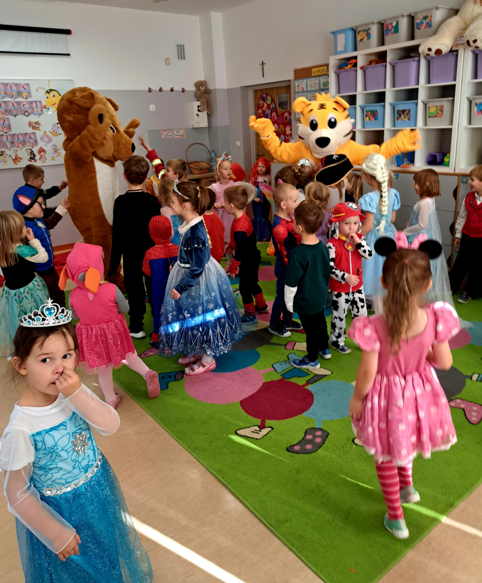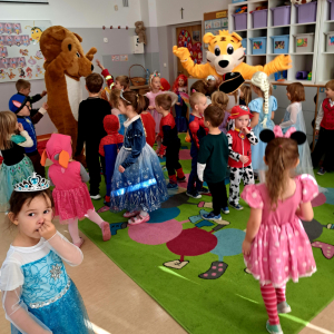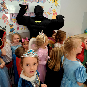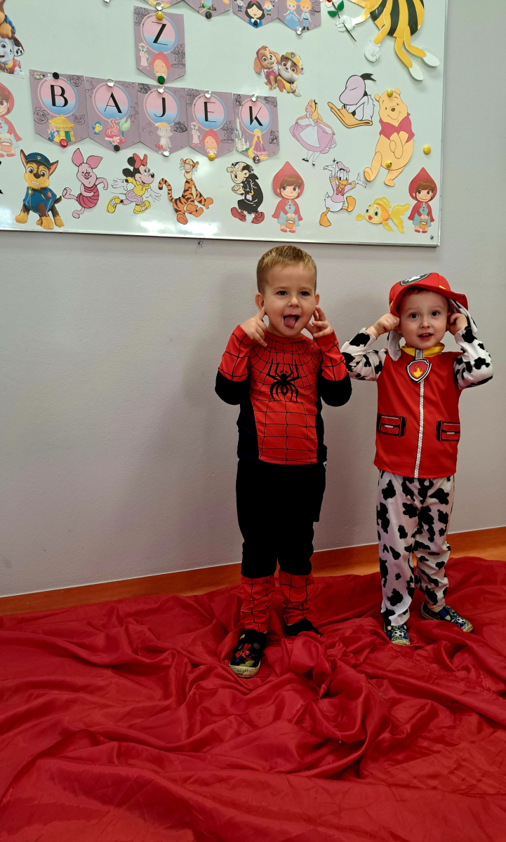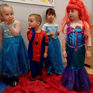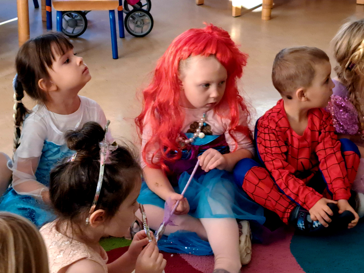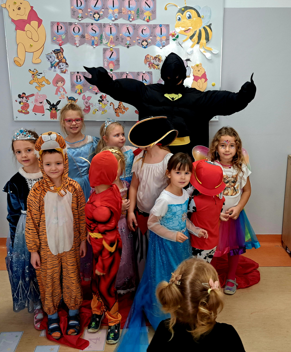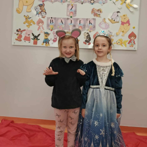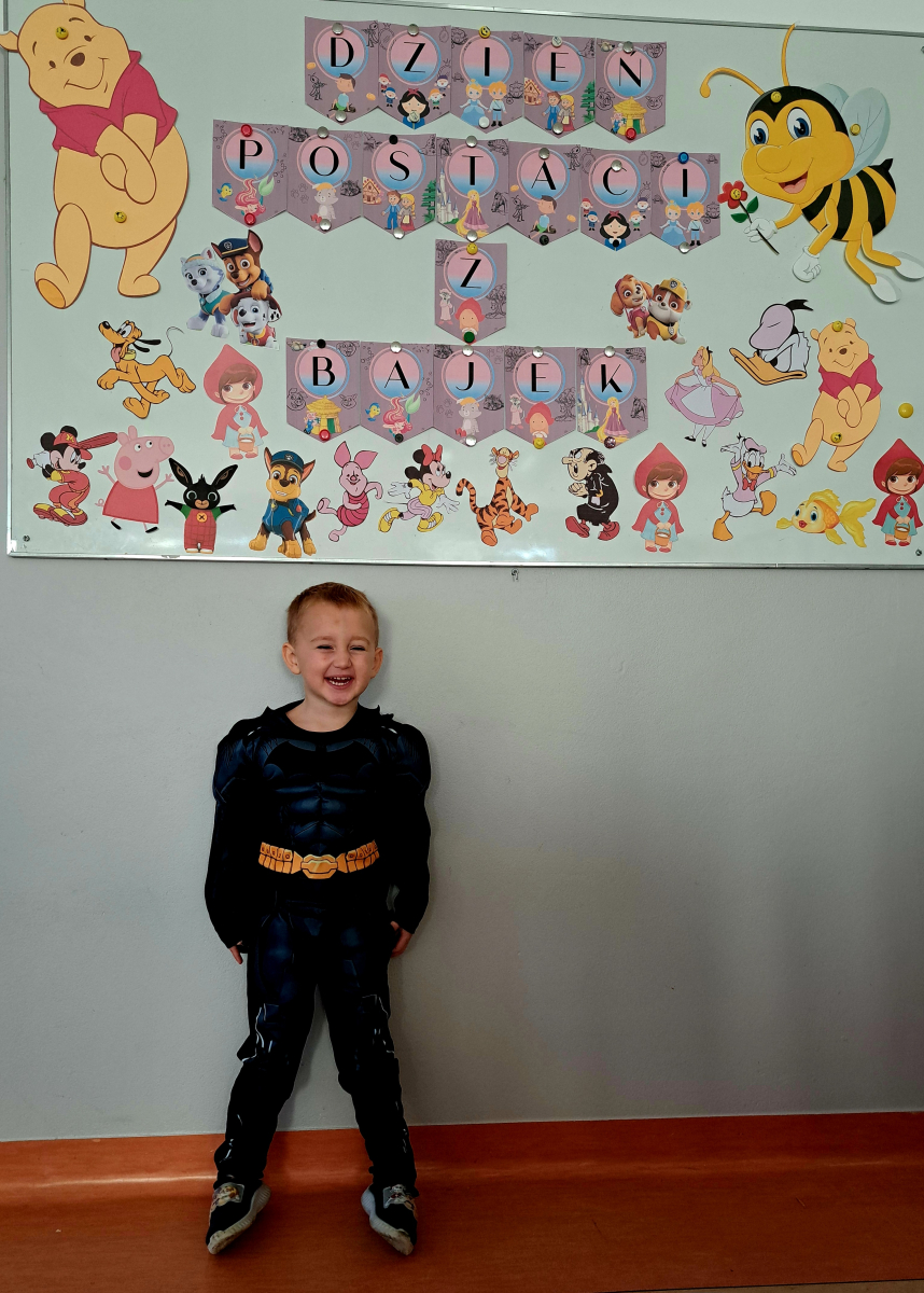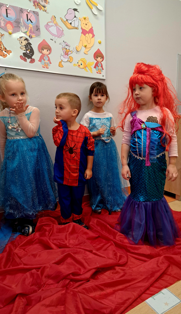 Z okazji "Dnia Postaci z Bajek" nasze przedszkole zamieniło się w prawdziwą bajkową krainę! Po salach spacerowały księżniczki, superbohaterowie, czarodzieje, wróżki, misie, tygryski i wiele innych postaci z ulubionych bajek dzieci. Były tańce wygibańce, zagadki, kolorowe prace plastyczne i mnóstwo śmiechu. Dzieci opowiadały o swoich ulubionych bohaterach, prezentowały swoje bajkowe stroje, wspólnie słuchały bajek i odkrywały, ze każda z nich niesie ważne przesłanie. To był magiczny, radosny i pełen przygód dzień, który na długo zostanie w naszej pamięci.