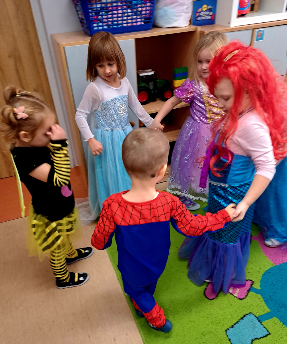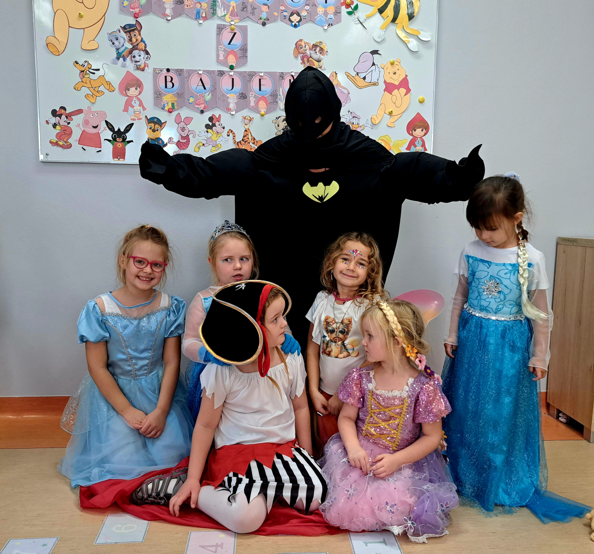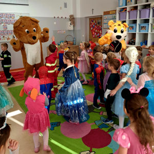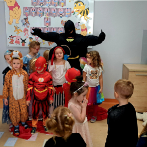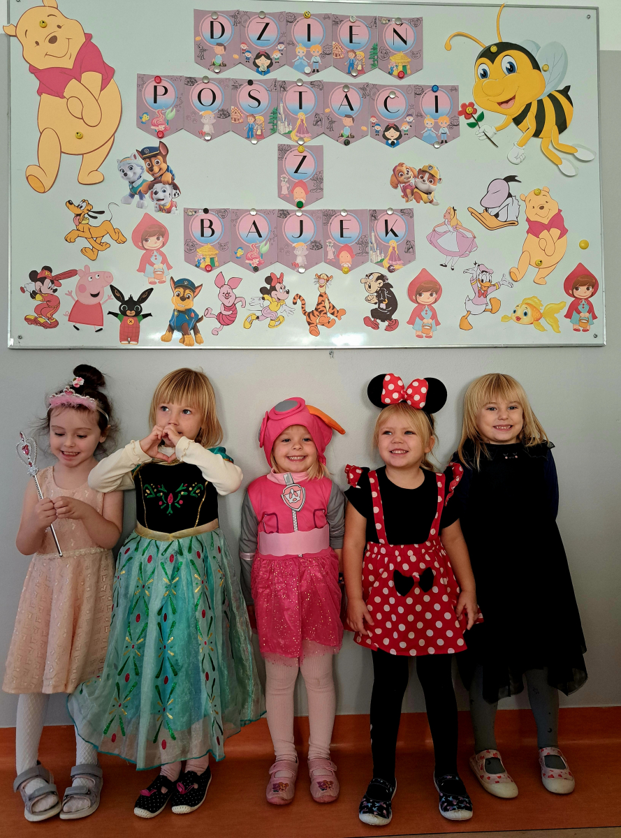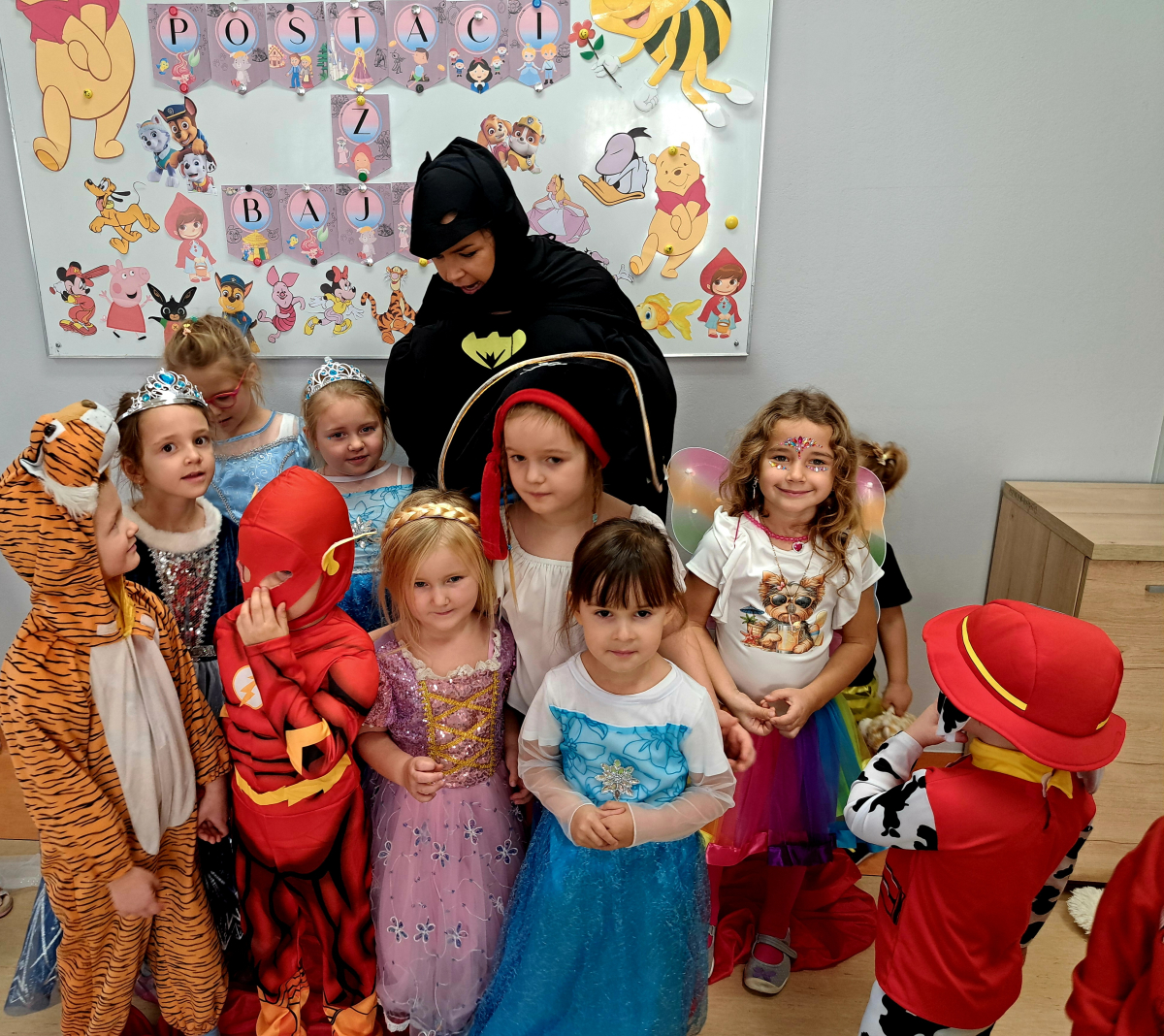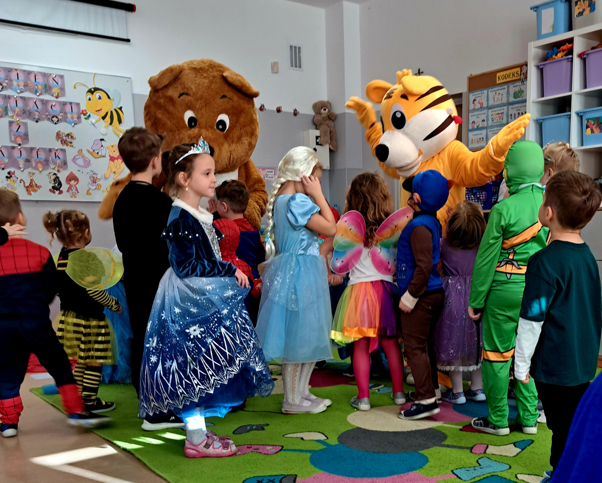Z okazji "Dnia Postaci z Bajek" nasze przedszkole zamieniło się w prawdziwą bajkową krainę! Po salach spacerowały księżniczki, superbohaterowie, czarodzieje, wróżki, misie, tygryski i wiele innych postaci z ulubionych bajek dzieci. Były tańce wygibańce, zagadki, kolorowe prace plastyczne i mnóstwo śmiechu. Dzieci opowiadały o swoich ulubionych bohaterach, prezentowały swoje bajkowe stroje, wspólnie słuchały bajek i odkrywały, ze każda z nich niesie ważne przesłanie. To był magiczny, radosny i pełen przygód dzień, który na długo zostanie w naszej pamięci.
