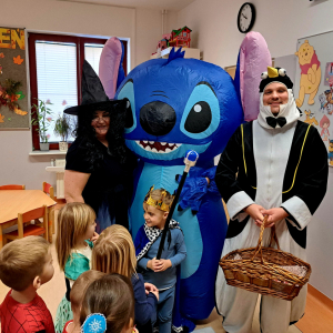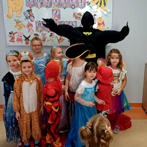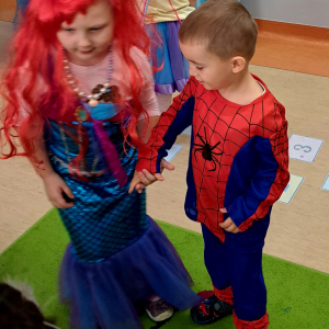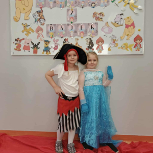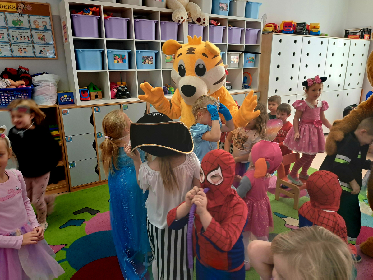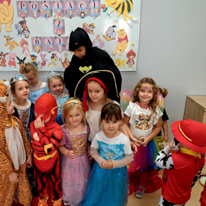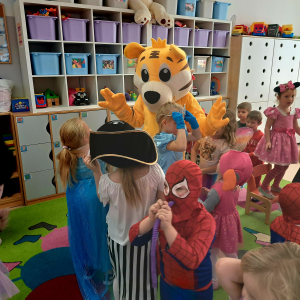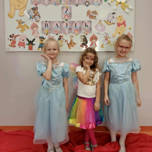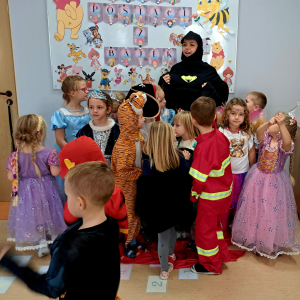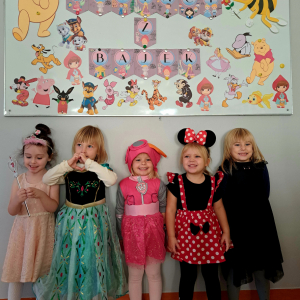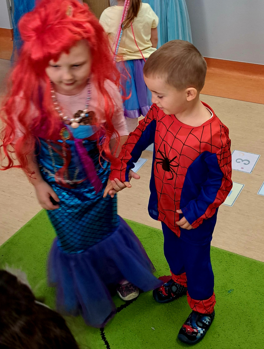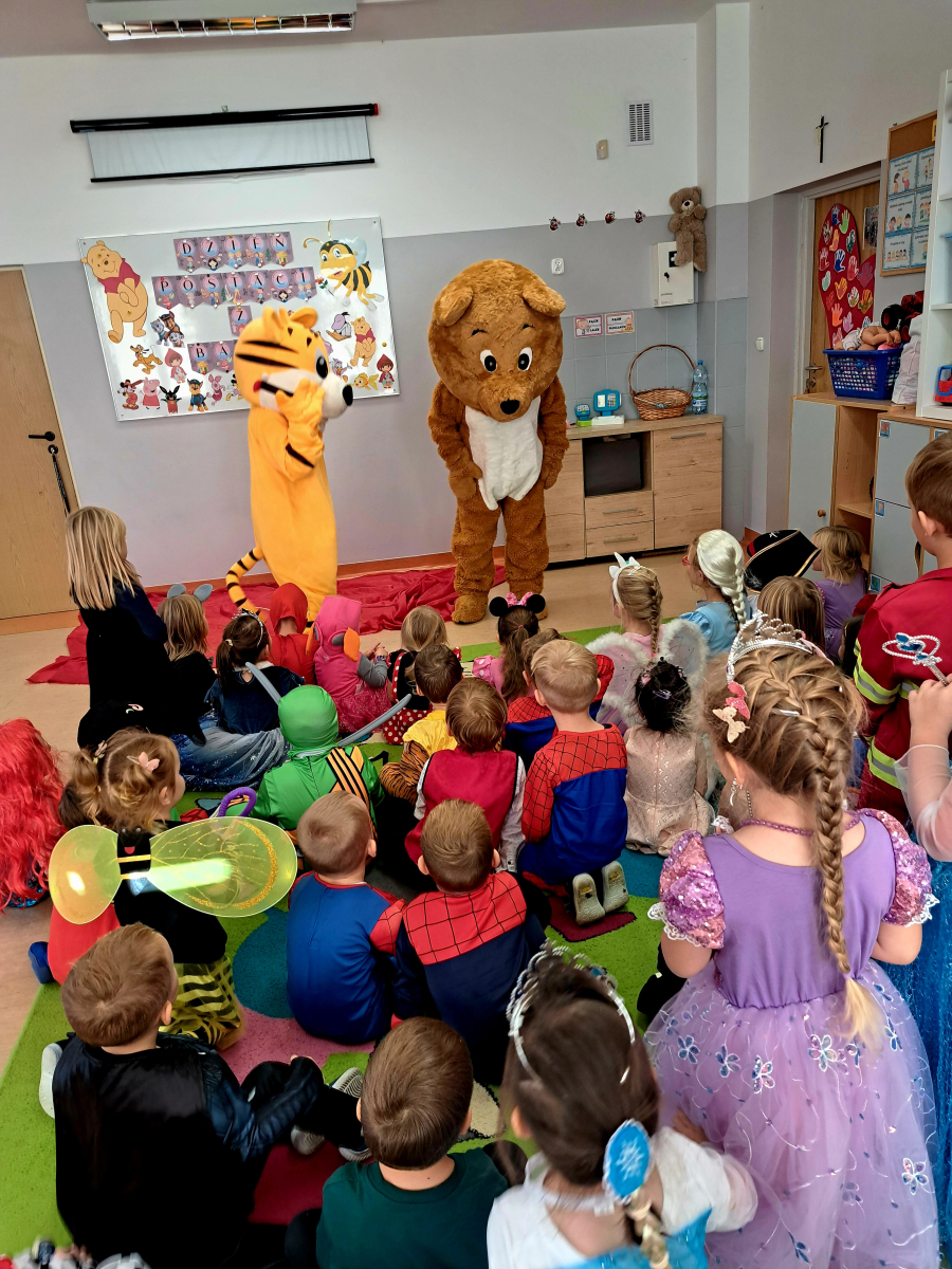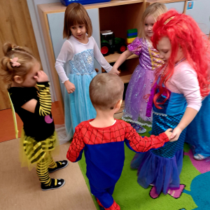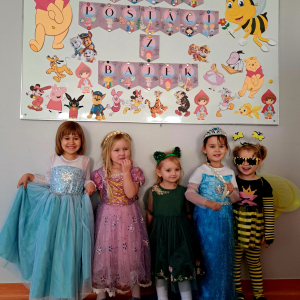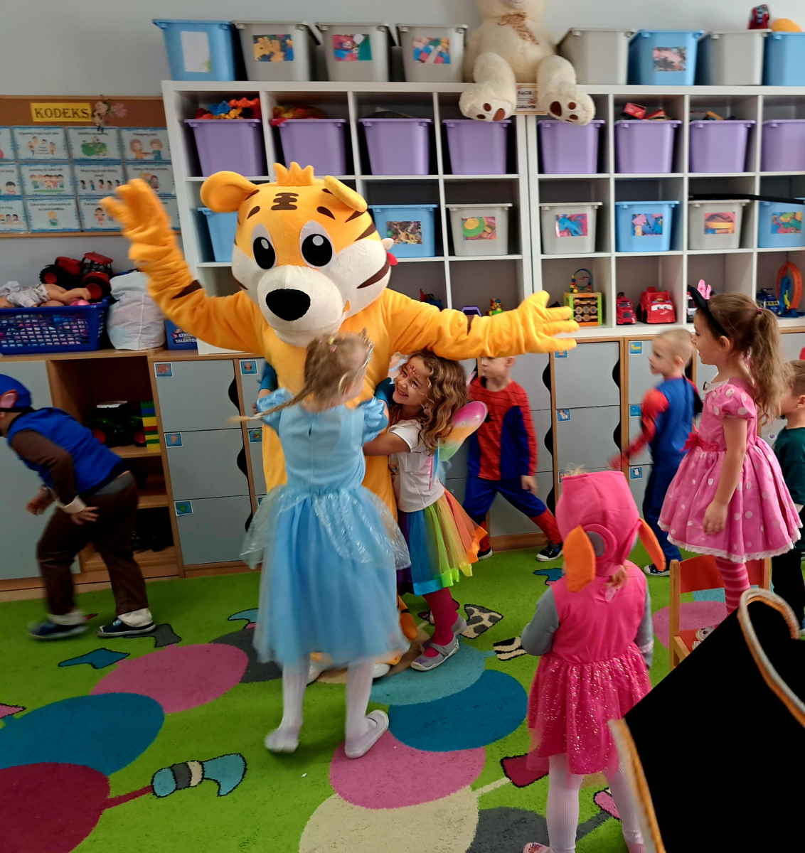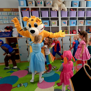 Z okazji "Dnia Postaci z Bajek" nasze przedszkole zamieniło się w prawdziwą bajkową krainę! Po salach spacerowały księżniczki, superbohaterowie, czarodzieje, wróżki, misie, tygryski i wiele innych postaci z ulubionych bajek dzieci. Były tańce wygibańce, zagadki, kolorowe prace plastyczne i mnóstwo śmiechu. Dzieci opowiadały o swoich ulubionych bohaterach, prezentowały swoje bajkowe stroje, wspólnie słuchały bajek i odkrywały, ze każda z nich niesie ważne przesłanie. To był magiczny, radosny i pełen przygód dzień, który na długo zostanie w naszej pamięci.