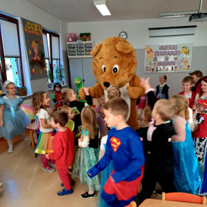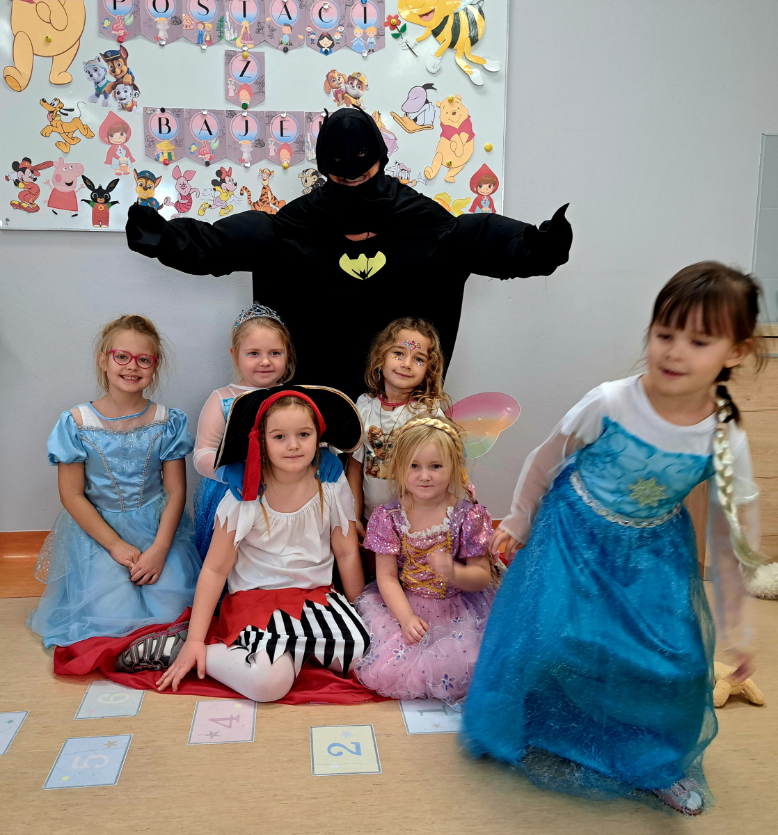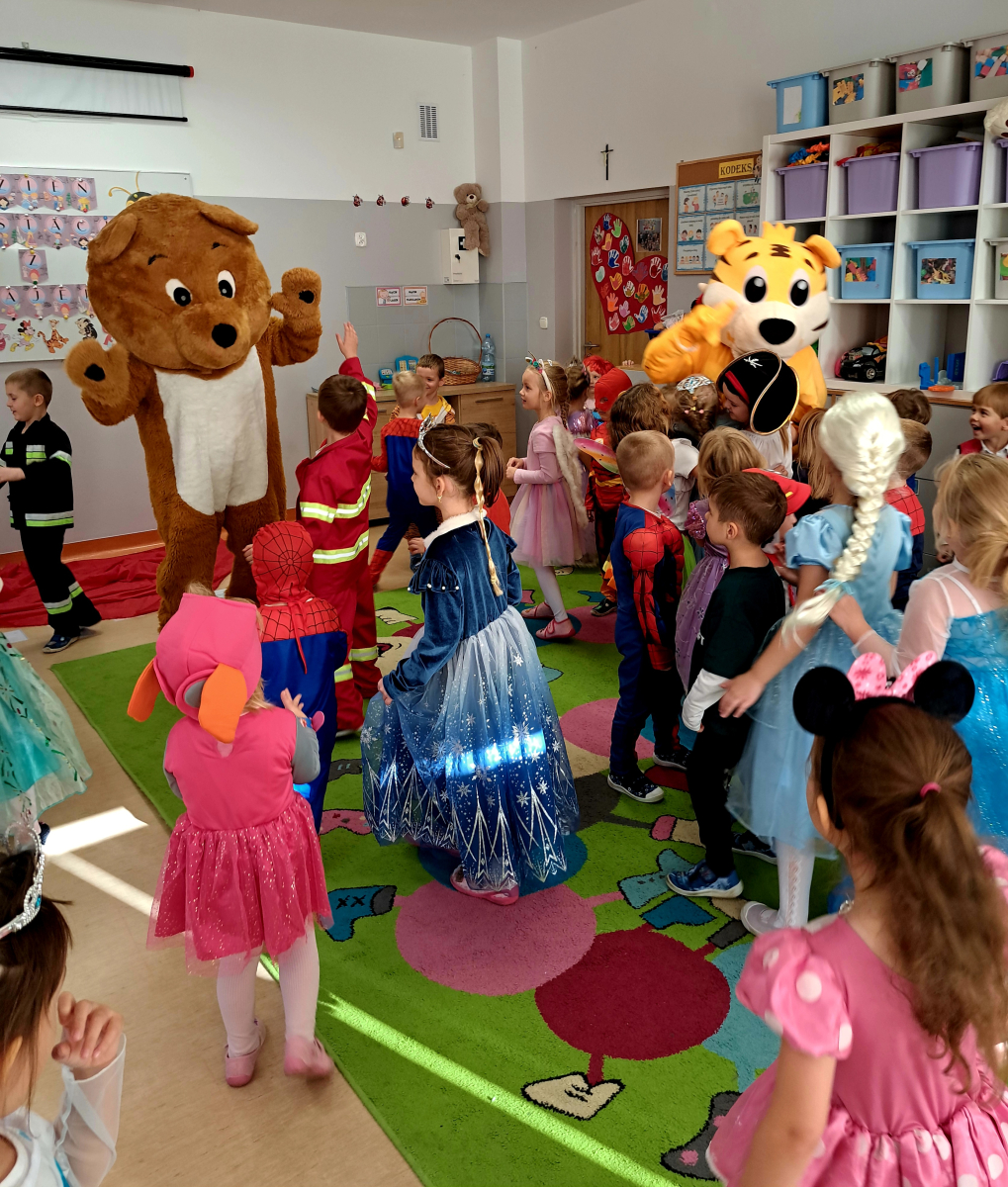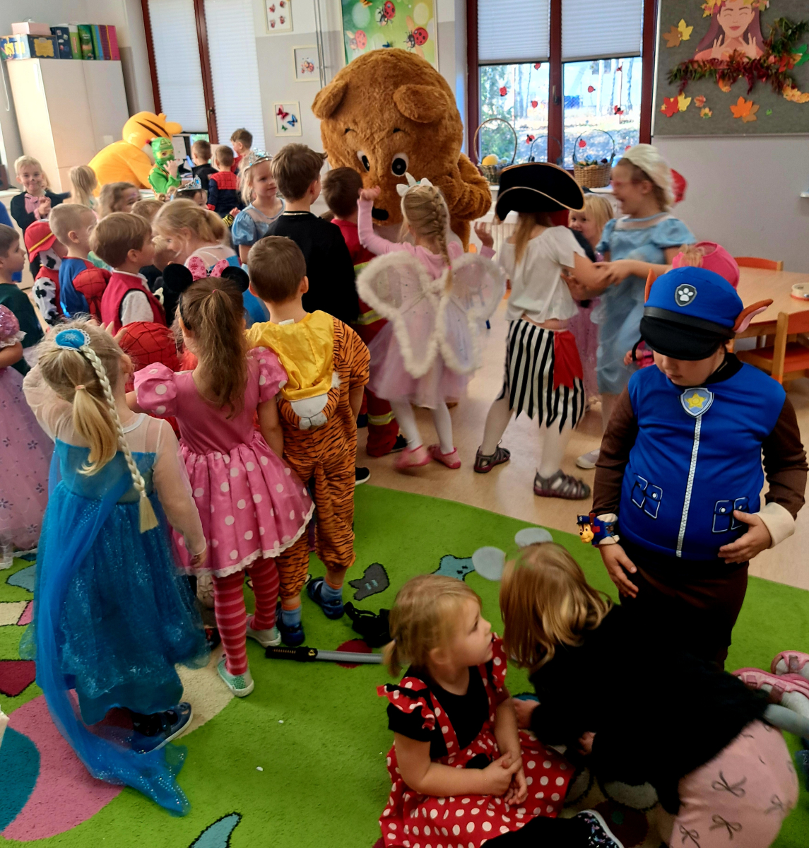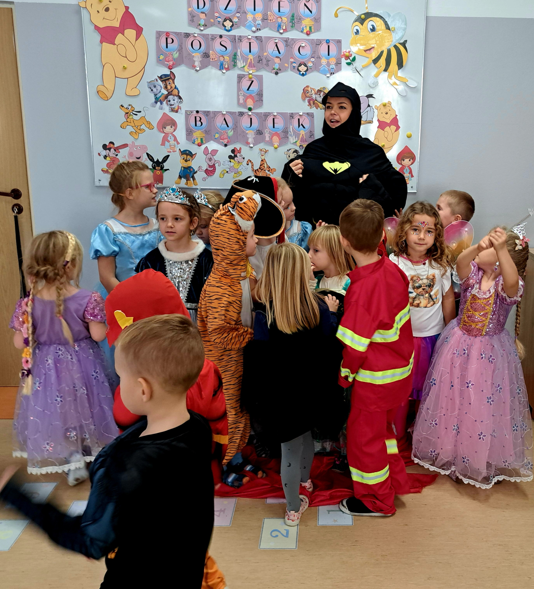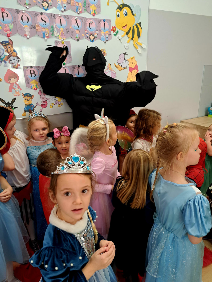 Z okazji "Dnia Postaci z Bajek" nasze przedszkole zamieniło się w prawdziwą bajkową krainę! Po salach spacerowały księżniczki, superbohaterowie, czarodzieje, wróżki, misie, tygryski i wiele innych postaci z ulubionych bajek dzieci. Były tańce wygibańce, zagadki, kolorowe prace plastyczne i mnóstwo śmiechu. Dzieci opowiadały o swoich ulubionych bohaterach, prezentowały swoje bajkowe stroje, wspólnie słuchały bajek i odkrywały, ze każda z nich niesie ważne przesłanie. To był magiczny, radosny i pełen przygód dzień, który na długo zostanie w naszej pamięci.
