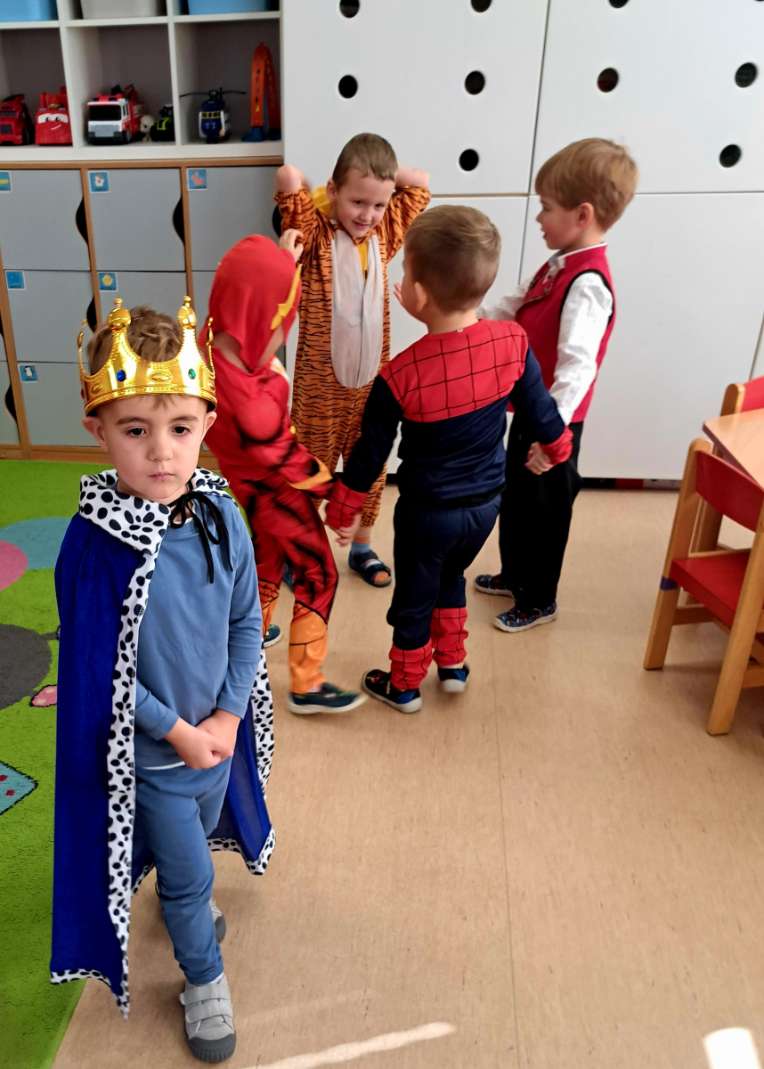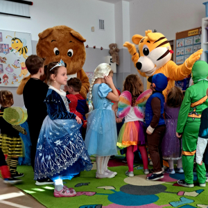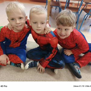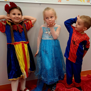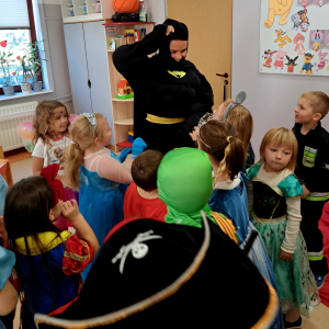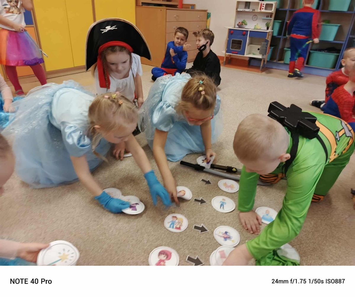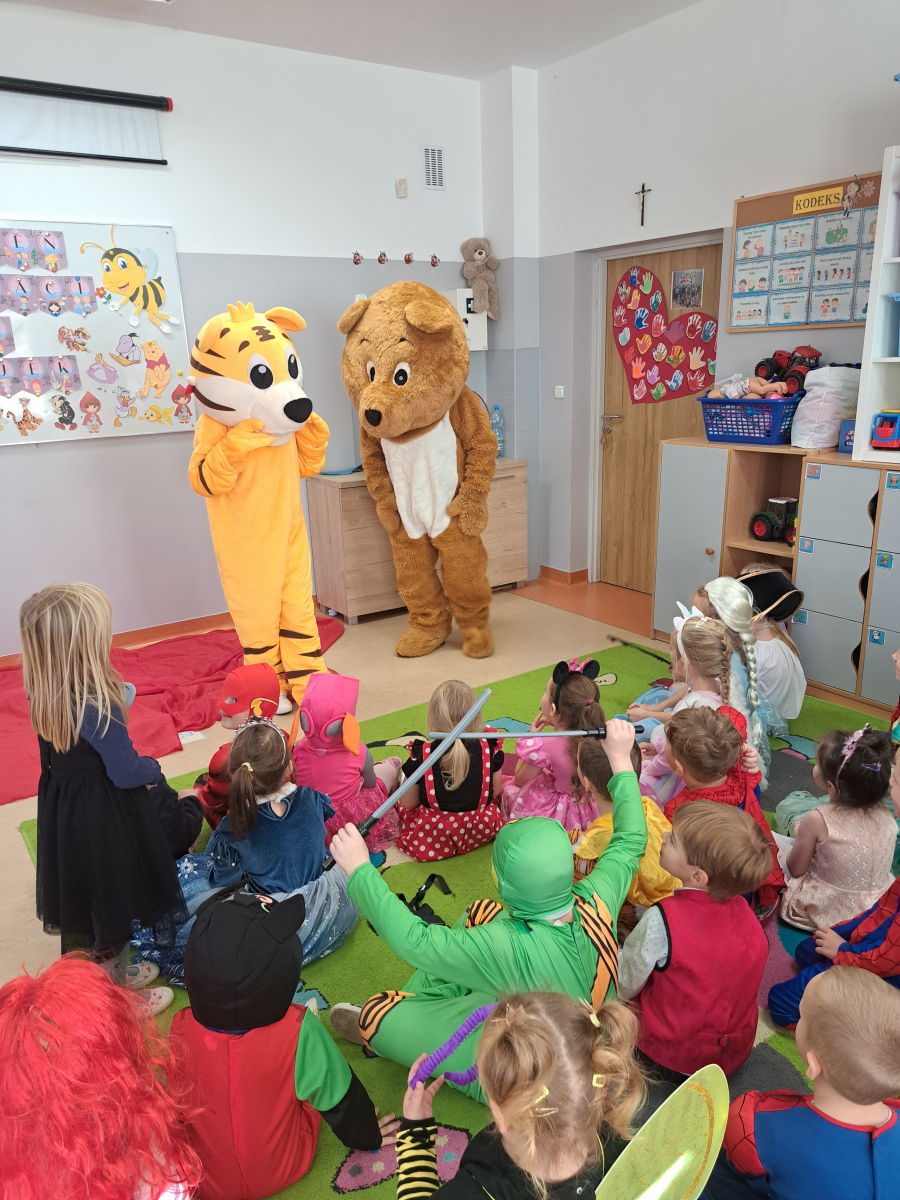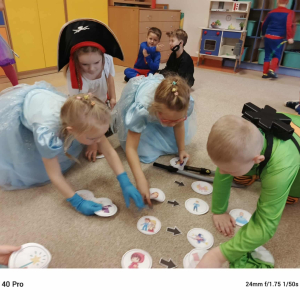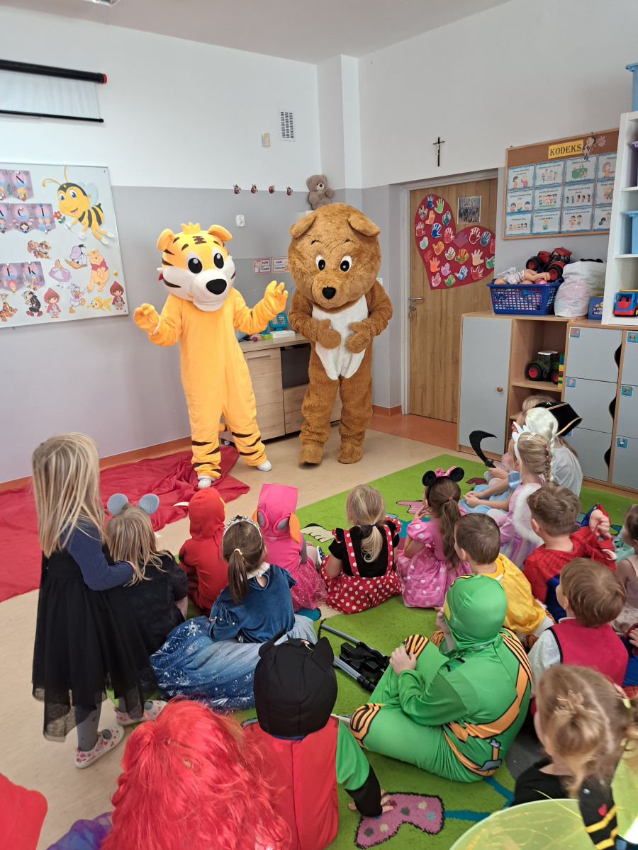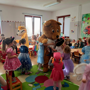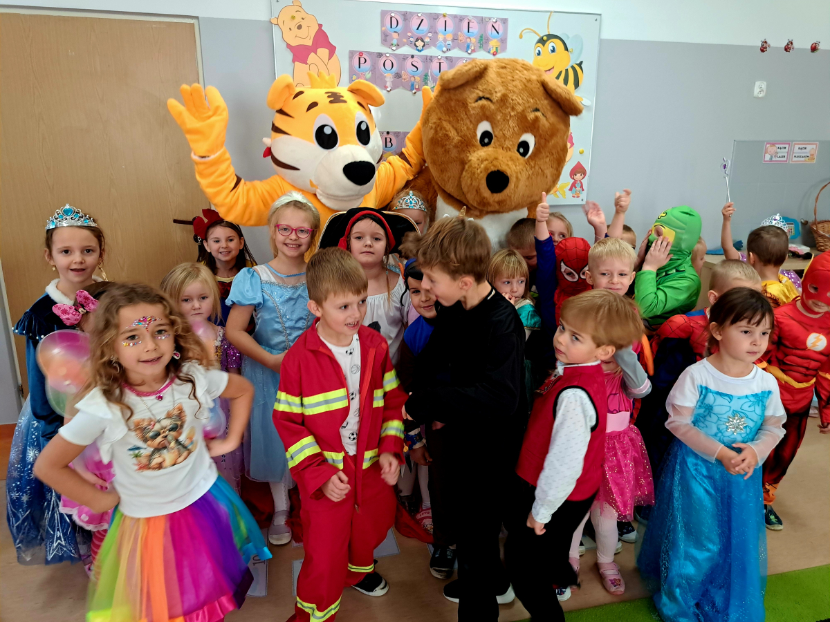 Z okazji "Dnia Postaci z Bajek" nasze przedszkole zamieniło się w prawdziwą bajkową krainę! Po salach spacerowały księżniczki, superbohaterowie, czarodzieje, wróżki, misie, tygryski i wiele innych postaci z ulubionych bajek dzieci. Były tańce wygibańce, zagadki, kolorowe prace plastyczne i mnóstwo śmiechu. Dzieci opowiadały o swoich ulubionych bohaterach, prezentowały swoje bajkowe stroje, wspólnie słuchały bajek i odkrywały, ze każda z nich niesie ważne przesłanie. To był magiczny, radosny i pełen przygód dzień, który na długo zostanie w naszej pamięci.