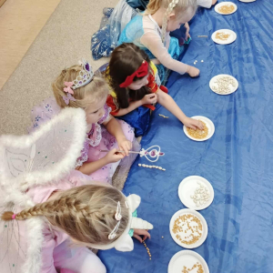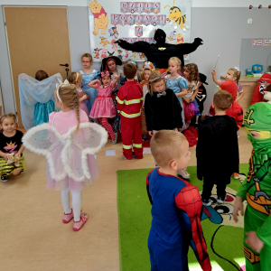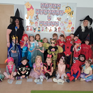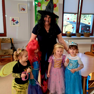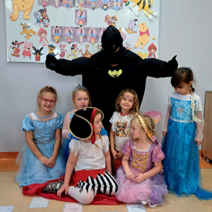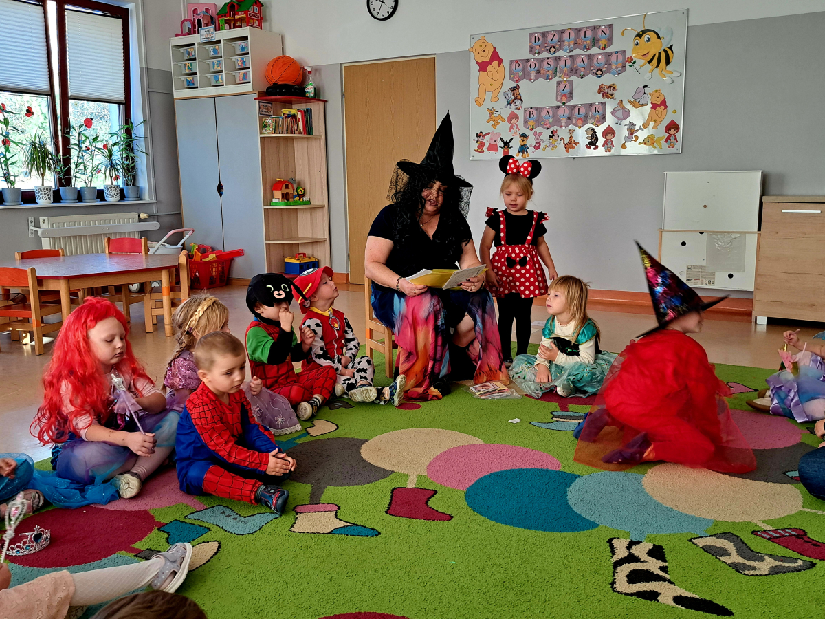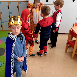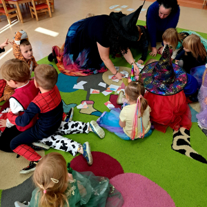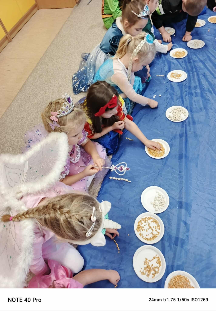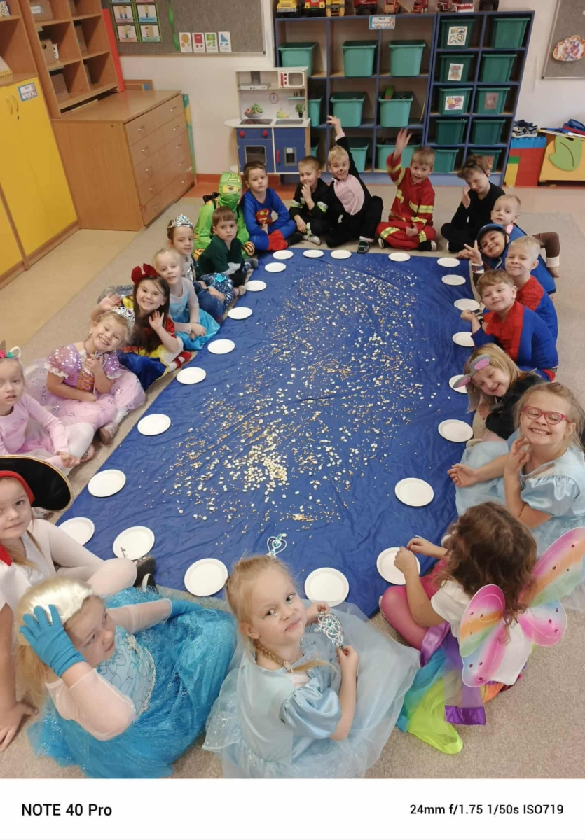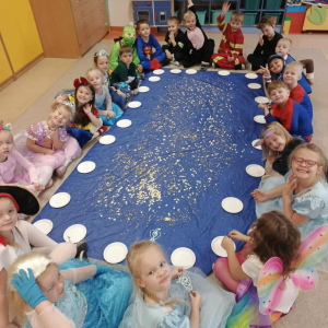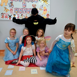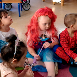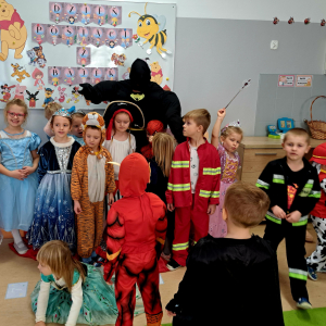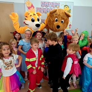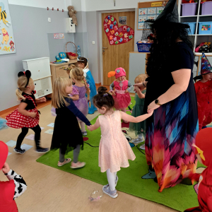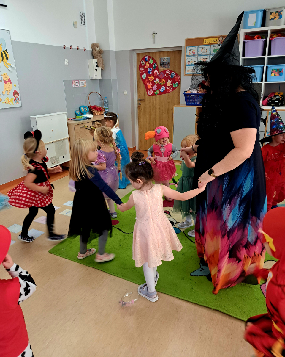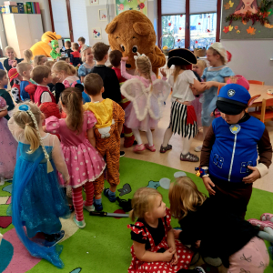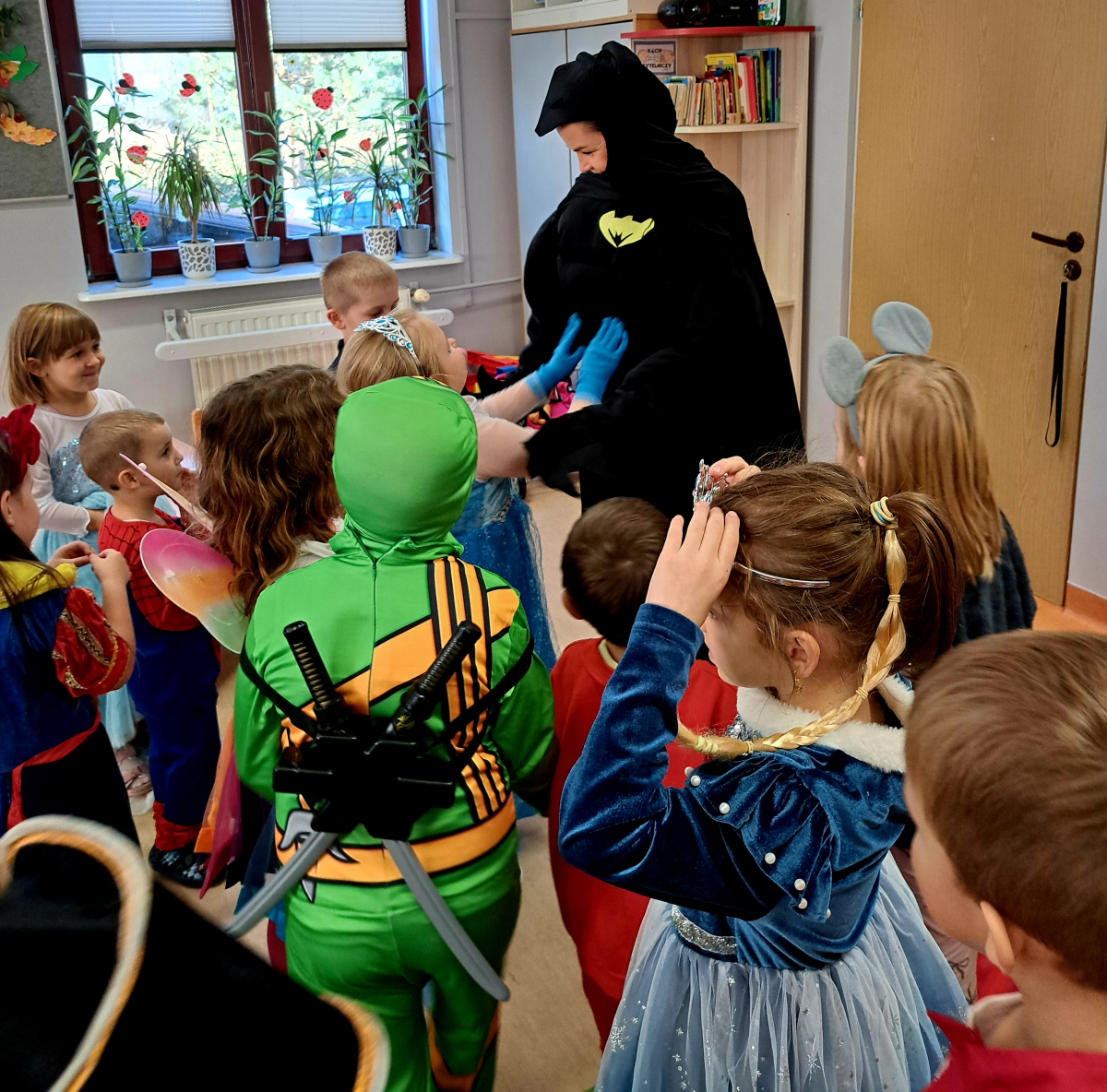 Z okazji "Dnia Postaci z Bajek" nasze przedszkole zamieniło się w prawdziwą bajkową krainę! Po salach spacerowały księżniczki, superbohaterowie, czarodzieje, wróżki, misie, tygryski i wiele innych postaci z ulubionych bajek dzieci. Były tańce wygibańce, zagadki, kolorowe prace plastyczne i mnóstwo śmiechu. Dzieci opowiadały o swoich ulubionych bohaterach, prezentowały swoje bajkowe stroje, wspólnie słuchały bajek i odkrywały, ze każda z nich niesie ważne przesłanie. To był magiczny, radosny i pełen przygód dzień, który na długo zostanie w naszej pamięci.