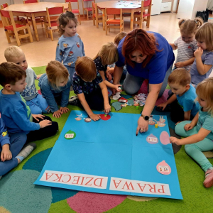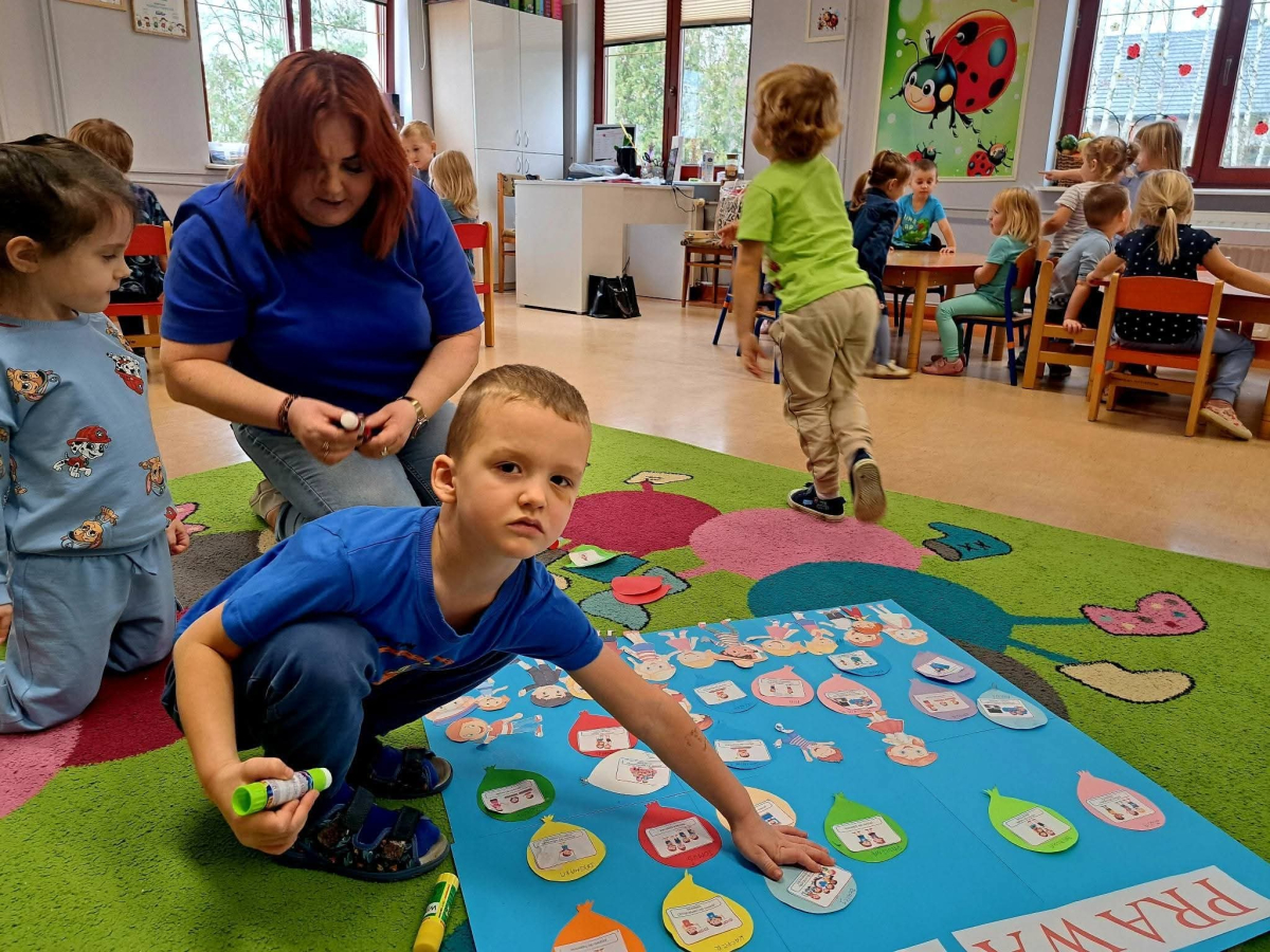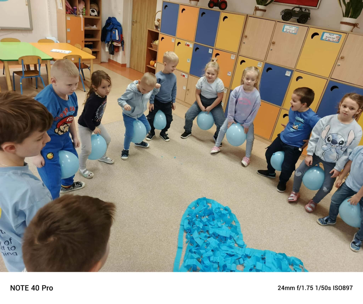 W dni 20 listopada w grupach Tygrysków i Biedroneczek świętowano Międzynarodowy Dzień Praw Dziecka w radosnej i twórczej atmosferze.Dzieci uczestniczyły w zabawach muzyczni - ruchowych, które wprowadziły je w pełen energii nastrój. Podczas zajęć każda grupa realizowała własne, wyjątkowe zadania. Tygryski wykonały niebieskie serduszka, wkładając w nie mnóstwo kreatywności i zaangażowania. Biedroneczki tworzyły plakat dotyczący oraw dziecka, rozmawiając o tym, jak ważne jest, by każde dziecko było kochane, bezpieczne i szanowane. W tym wyjątkowym dniu rozdawane były także balony, które sprawiły dzieciom wiele radości.
