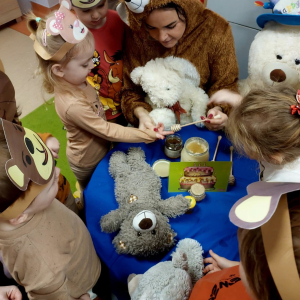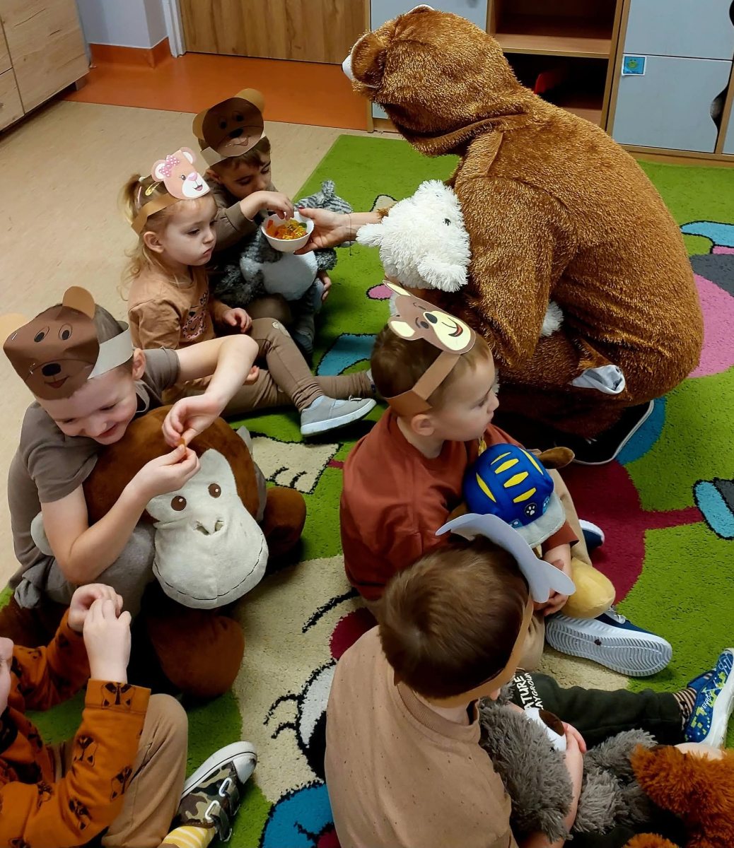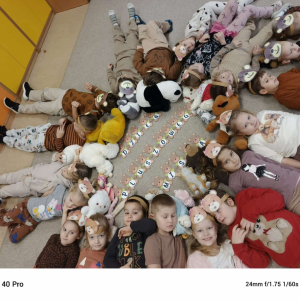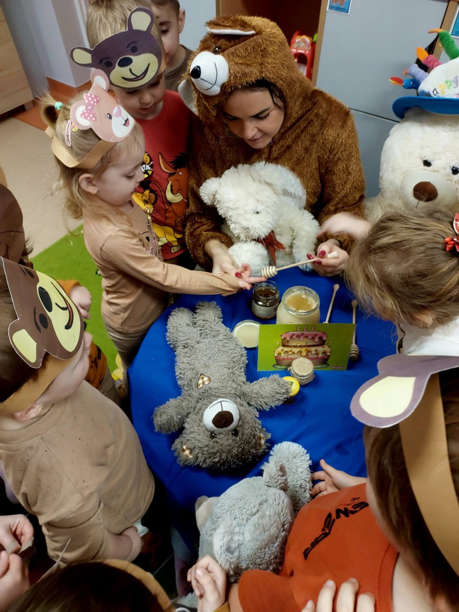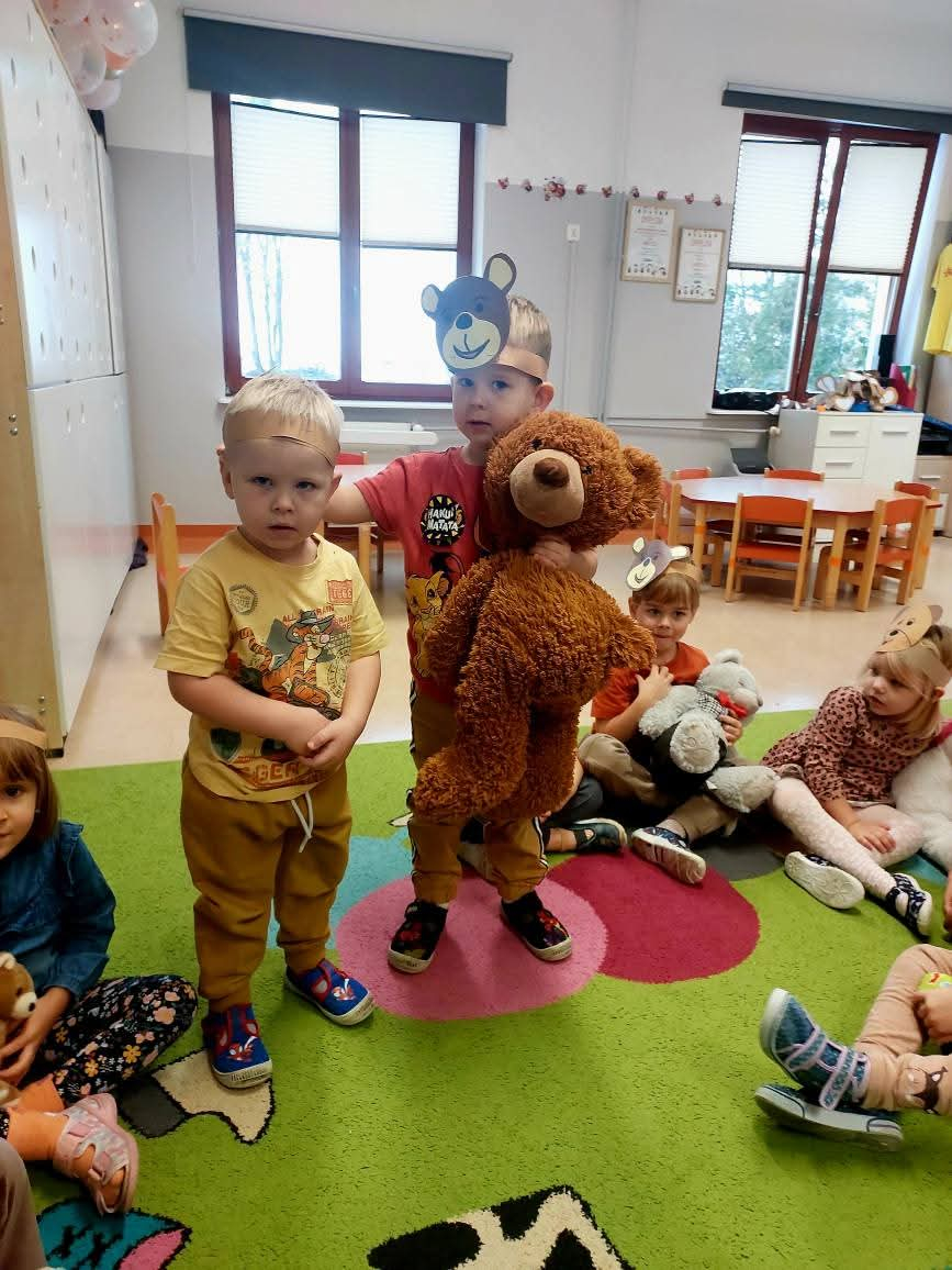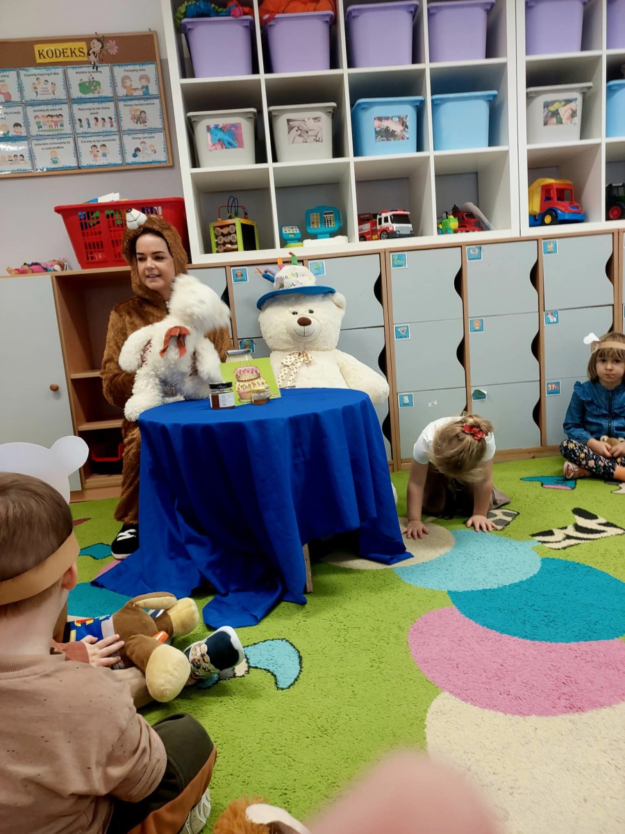 Przedszkolaki uroczyście obchodziły Dzień Pluszowego Misia. Na początku spotkania dzieci wyjatkowego goscia - dużego pluszowego misia, któremu wspólnie zaśpiewały "STO LAT". W podziekowaniu jubilat obdarował wszystkich słodkosciami oraz pysznym miodkiem do degustacji. Podczad świetowania dzieci przygotowywały smakowite przysmaki w kształcie maskotki, które z apetytem zjadły. Dodatkowo brały udział w zajeciach kodowania, wykonując zadania inspirowane misiowym tematem. Nie zabrakło wesołych zabaw muzyczno - ruchowych, przeliczania i zabaw rozwijających współpracę. Obchody Dnia Pluszowego Misia przebiegły w ciepłej, radosnej atmosferze i dostarczyły przedszkolakom wielu niezapomnianych wrażeń.