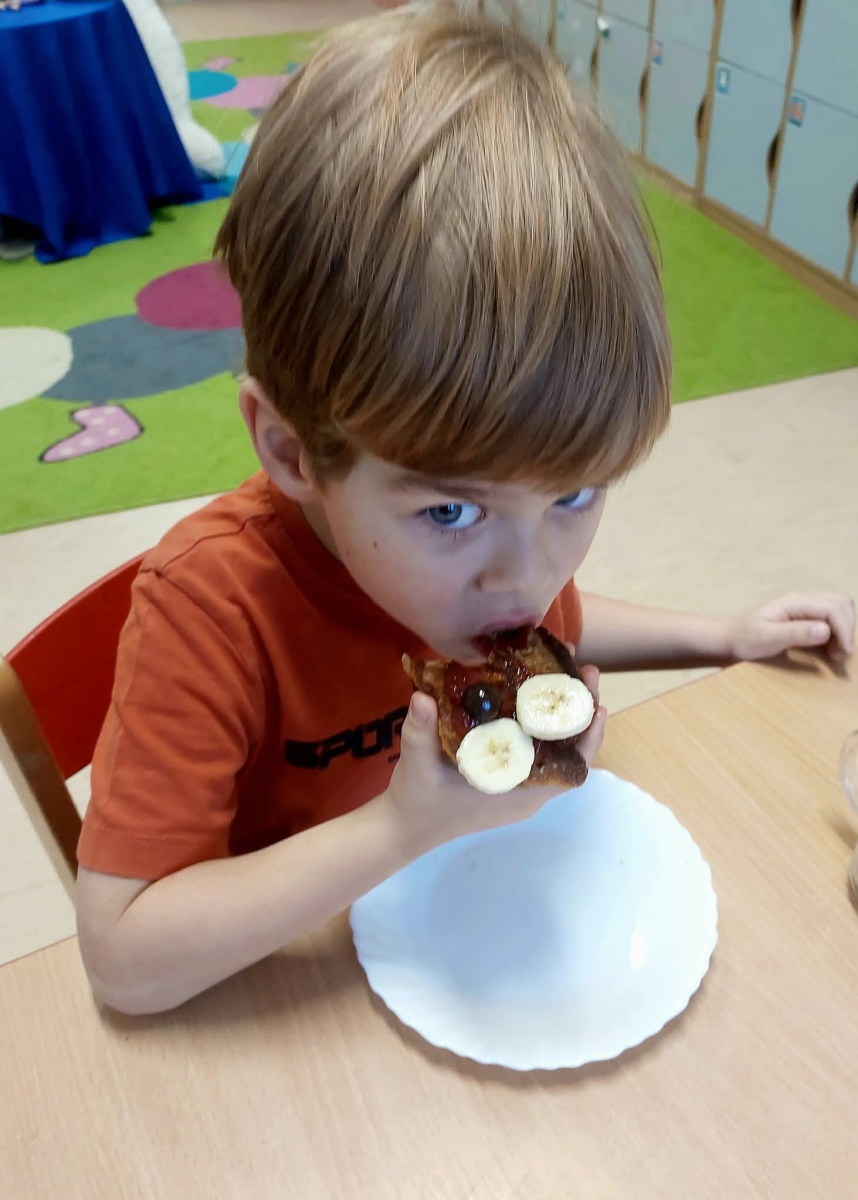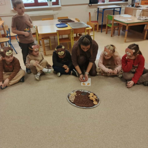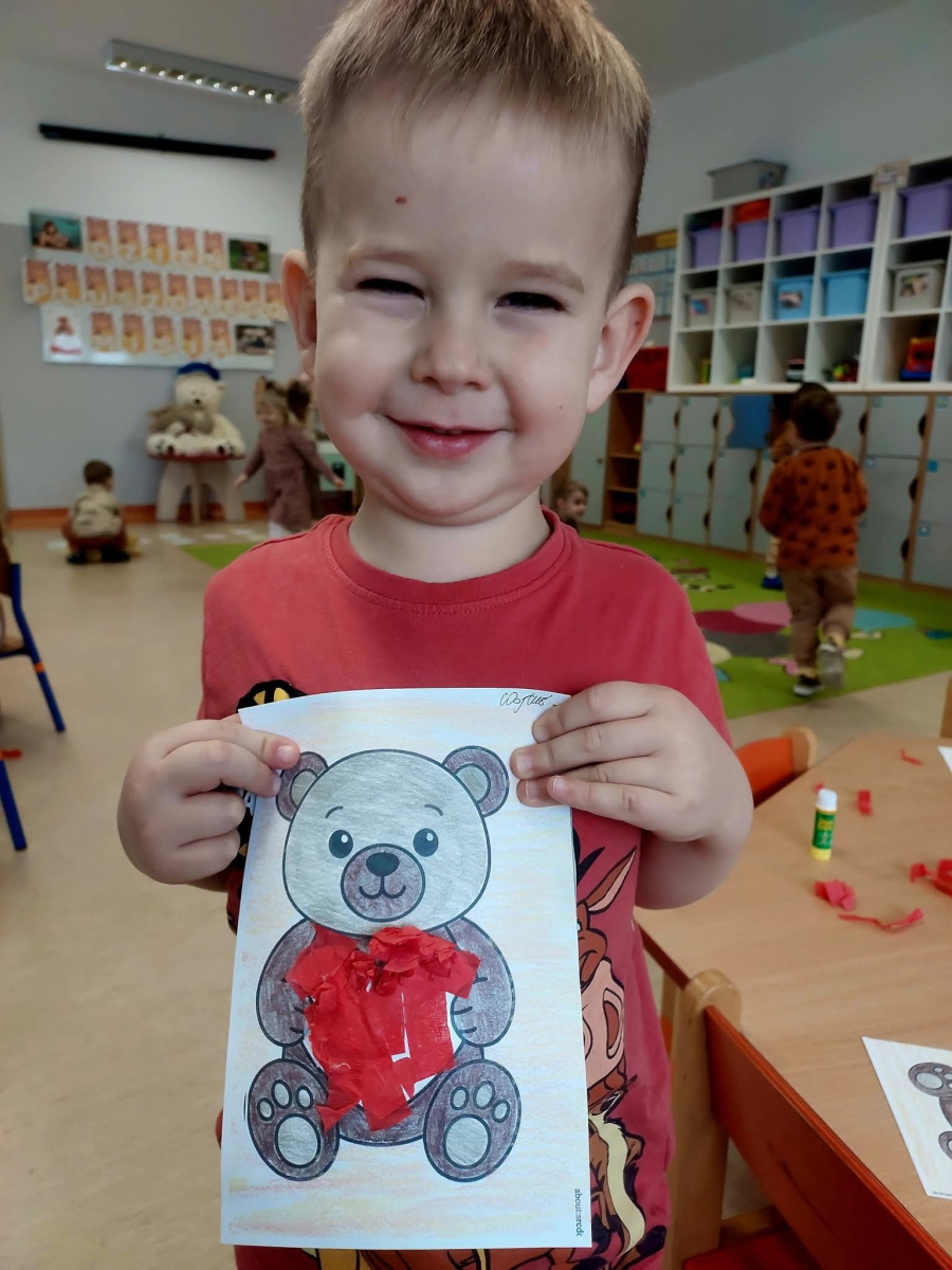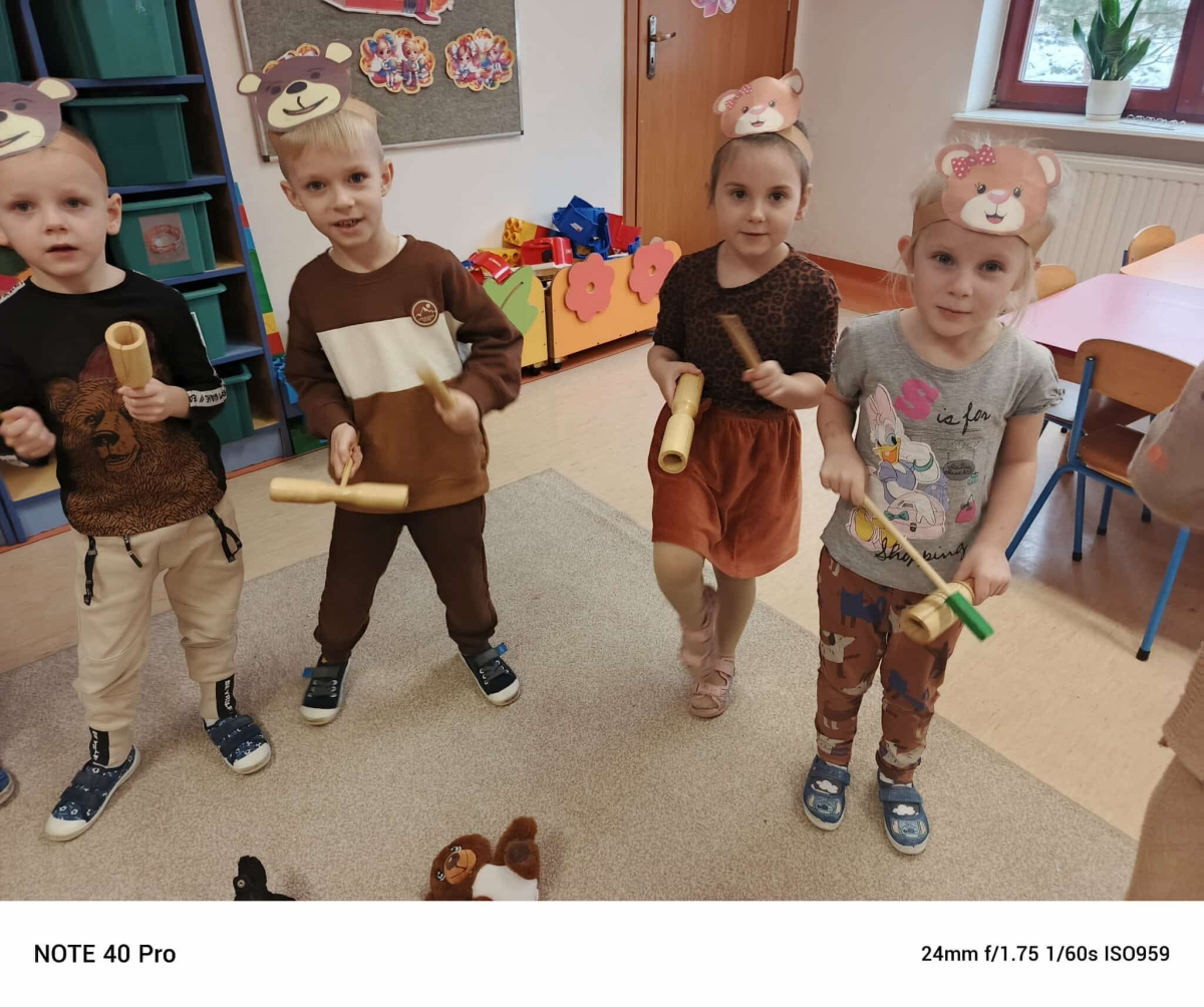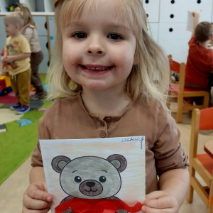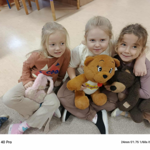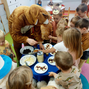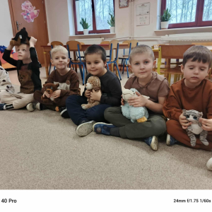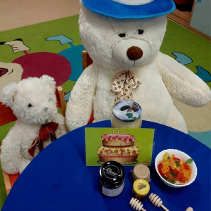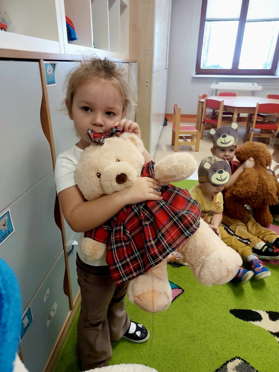 Przedszkolaki uroczyście obchodziły Dzień Pluszowego Misia. Na początku spotkania dzieci wyjatkowego goscia - dużego pluszowego misia, któremu wspólnie zaśpiewały "STO LAT". W podziekowaniu jubilat obdarował wszystkich słodkosciami oraz pysznym miodkiem do degustacji. Podczad świetowania dzieci przygotowywały smakowite przysmaki w kształcie maskotki, które z apetytem zjadły. Dodatkowo brały udział w zajeciach kodowania, wykonując zadania inspirowane misiowym tematem. Nie zabrakło wesołych zabaw muzyczno - ruchowych, przeliczania i zabaw rozwijających współpracę. Obchody Dnia Pluszowego Misia przebiegły w ciepłej, radosnej atmosferze i dostarczyły przedszkolakom wielu niezapomnianych wrażeń.