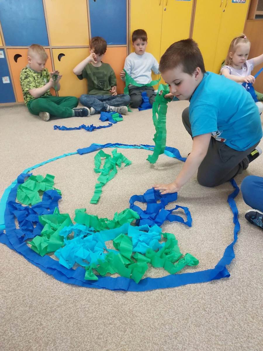 Grupy przedszkolne "Biedroneczek" i "Tygrysków" brały udział w obchodach Dnia Ziemi. Dzieci uczestniczyły w różnorodnych zadaniach oraz zabawach ruchowych. Słuchały opowiadań i rozmawiały na temat dbania o naszą planetę. Wzieły również udział w akcji sprzątania świata. Dzięki tym aktywnościom dowiedziały się, jak należy troszczyć się o Ziemię. Był to dzień pełen wrażeń..