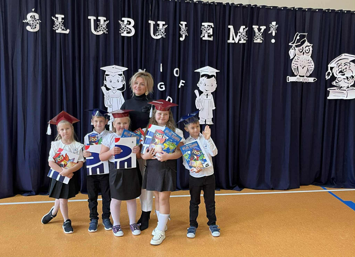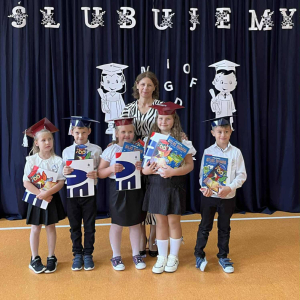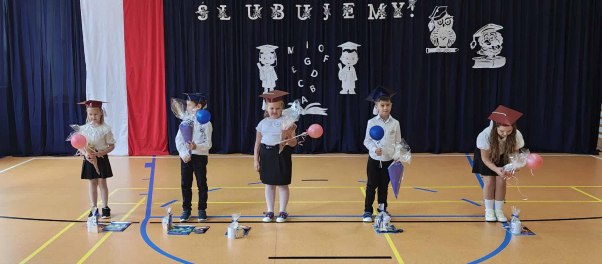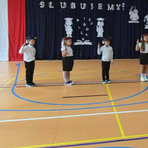 Na początku pani Dyrektor Karolina Trych serdecznie powitała wszystkich gości, a w szczególności bohaterów tego pięknego dnia – naszych pierwszoklasistów wraz z ich wychowawczynią, panią Hanną Jędrys. Pani Dyrektor złożyła również najserdeczniejsze życzenia naszym nowym uczniom, życząc im wielu sukcesów w nauce oraz wspaniałych chwil w szkole.