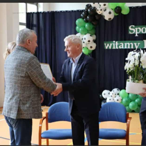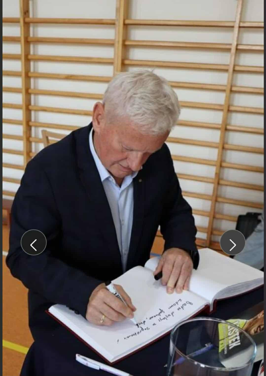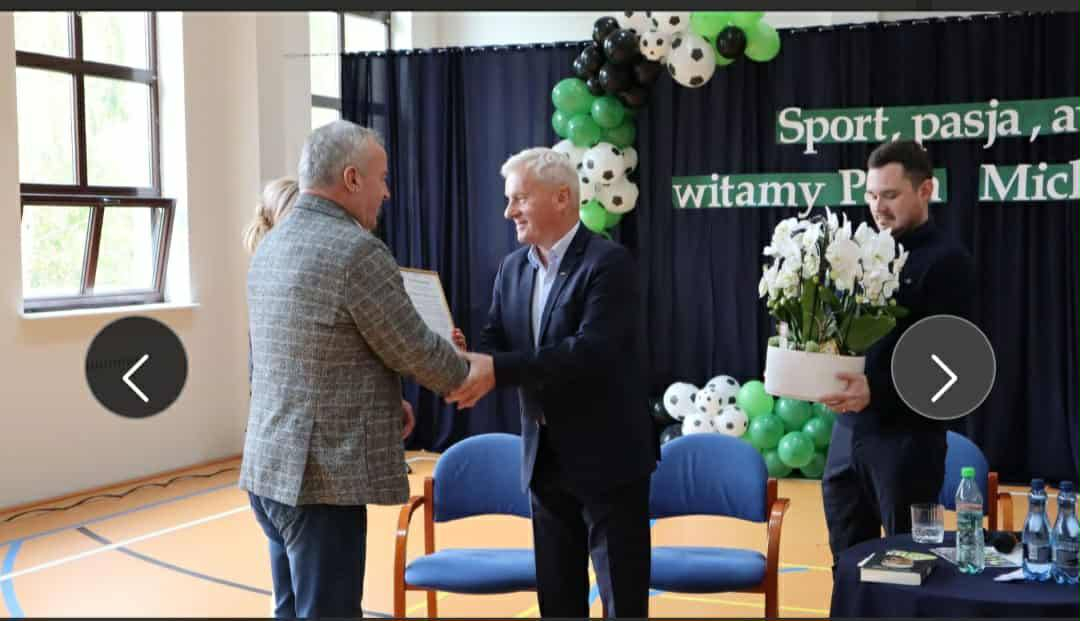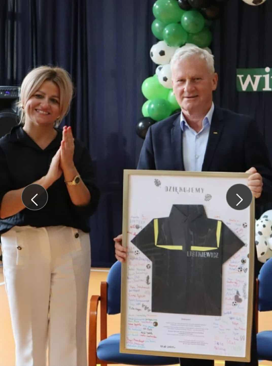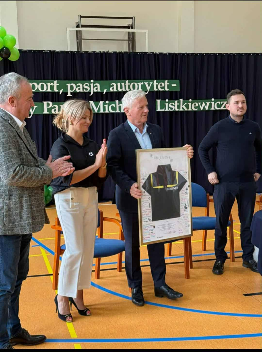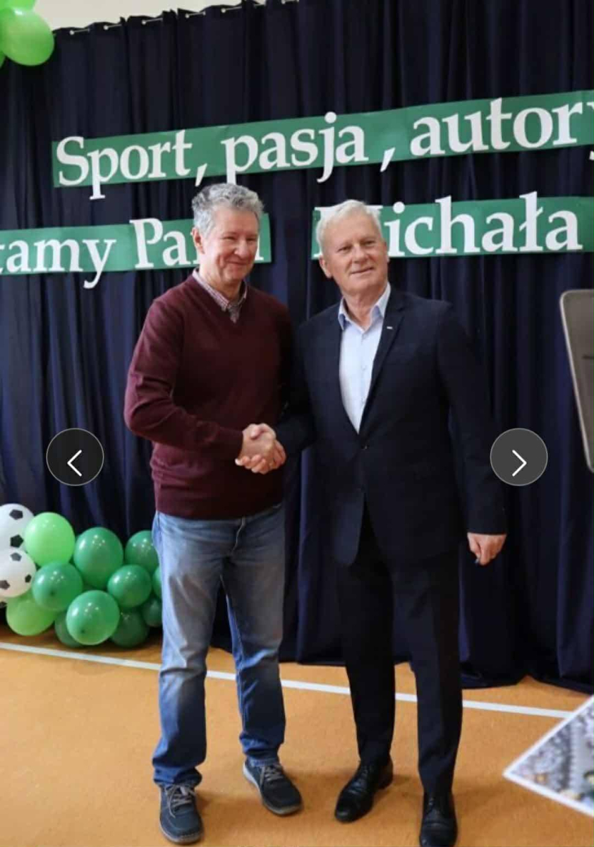 ️Naszym Gościem Honorowym był pan Michał Listkiewicz, były prezes Polskiego Związku Piłki Nożnej oraz wybitny sędzia międzynarodowy, który przybył do nas z synem Kajetanem Listkiewiczem na zaproszenie pani dyrektor Karoliny Trych. Spotkanie miało wyjątkowo sentymentalny charakter, ponieważ pan Michał przed laty sędziował mecz w Stężycy, a dziś powrócił tu, witany z ogromnym szacunkiem i wzruszeniem.