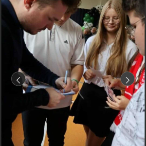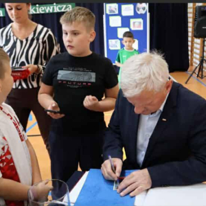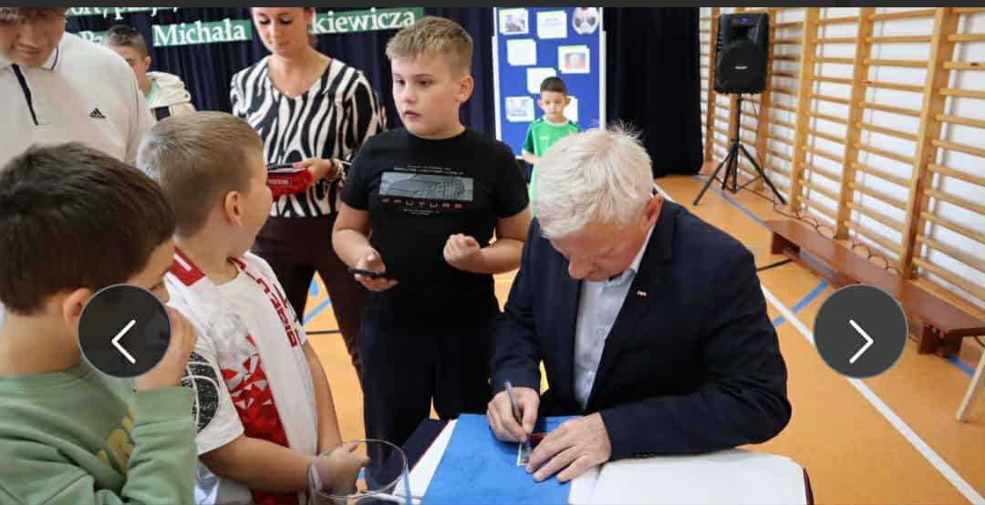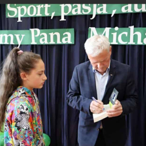 Na zakończenie każdy miał możliwość zrobienia pamiątkowego zdjęcia, zdobycia autografu pana Michała Listkiewicza oraz jego syna Kajetana, a także skosztowania pysznych, domowych ciasteczek przygotowanych przez rodziców oraz panie z Koła Gospodyń Wiejskich w Brzezinach. Serdeczne i szczególne podziękowania kierujemy do Rady Rodziców oraz wszystkich rodziców za zaangażowanie i wsparcie, które przyczyniło się do sukcesu tego wydarzenia.