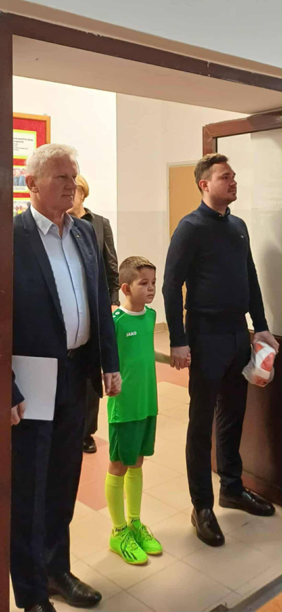 Uroczystość rozpoczęła się w poruszający sposób. Na salę gimnastyczną, przy dźwiękach utworu "Victory", młody piłkarz z klasy II, Jaś Wojdat, wprowadził Gości Honorowych, trzymając ich za ręce niczym zawodników wychodzących na murawę przed wielkim meczem. Ten moment poruszył wszystkich obecnych – był symbolem pokoleń połączonych miłością do sportu.