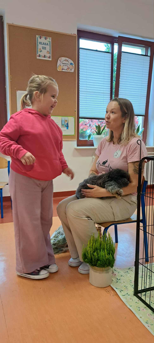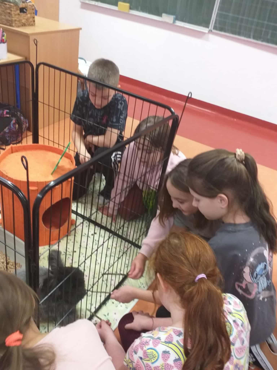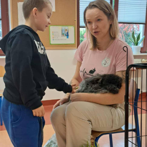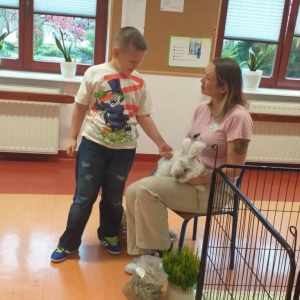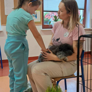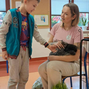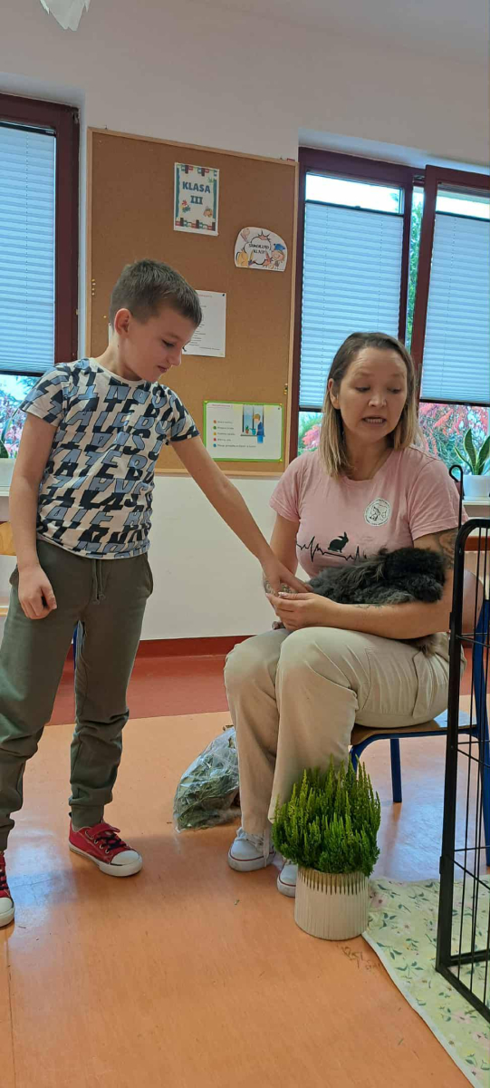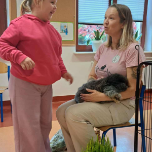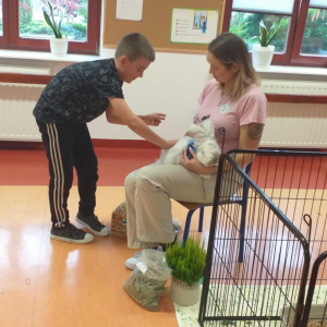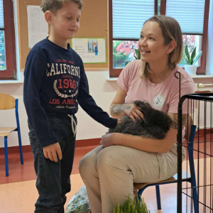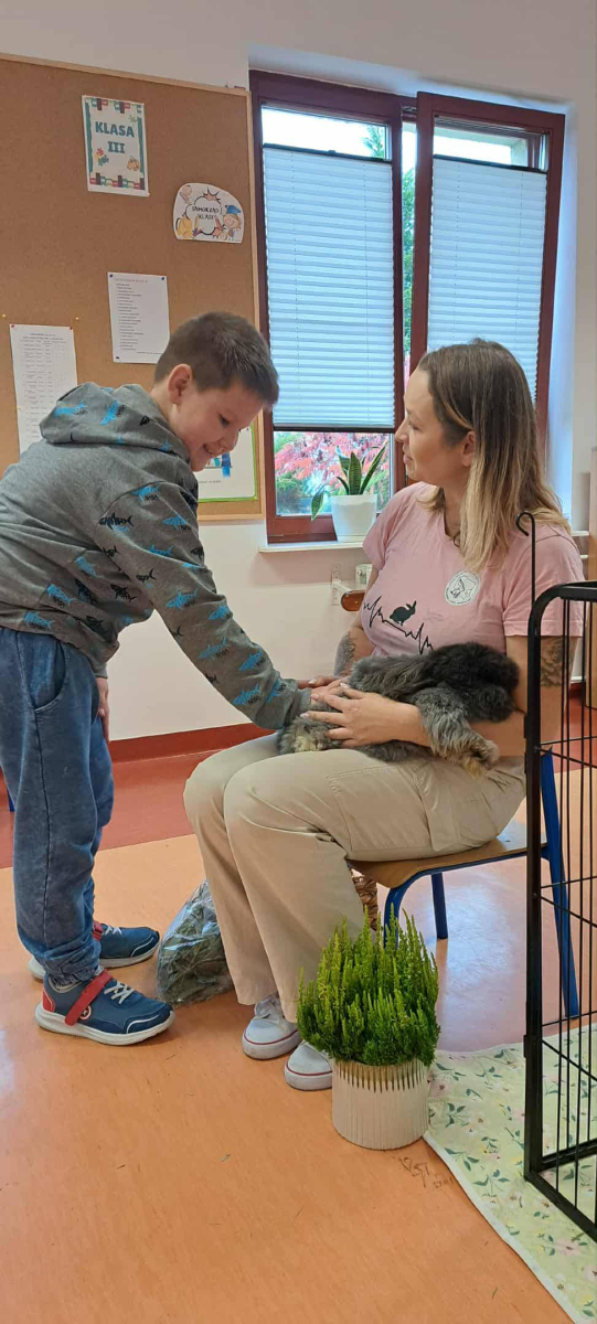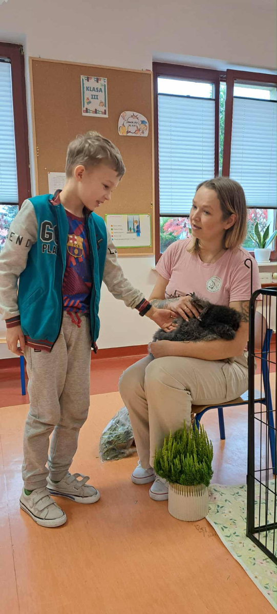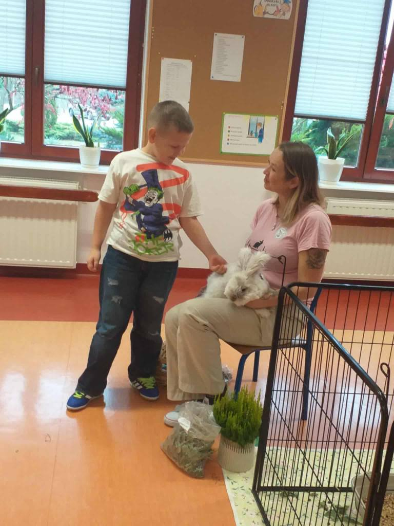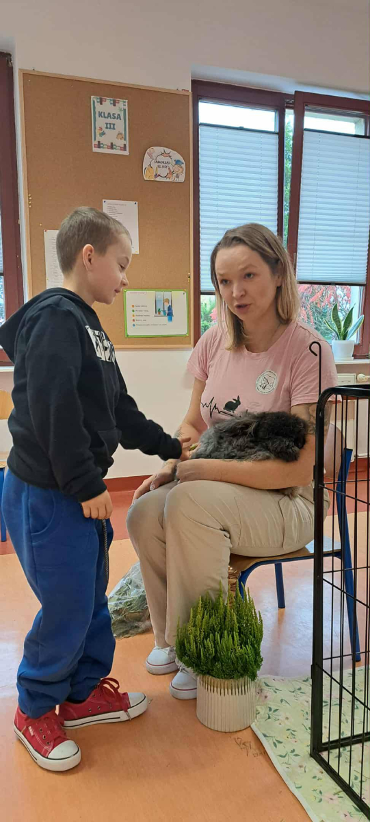 Pani Magdalena zaprezentowała również elementy lagoterapii – terapii z udziałem królików , która wspiera rozwój emocjonalny, uczy empatii i pomaga w wyciszeniu.