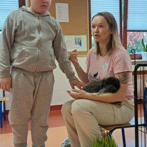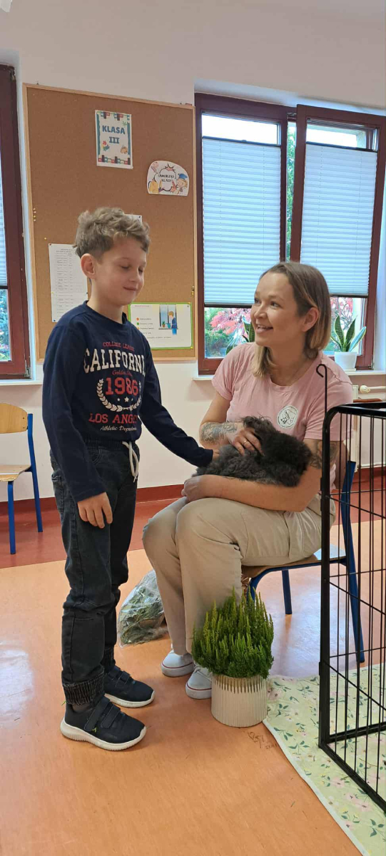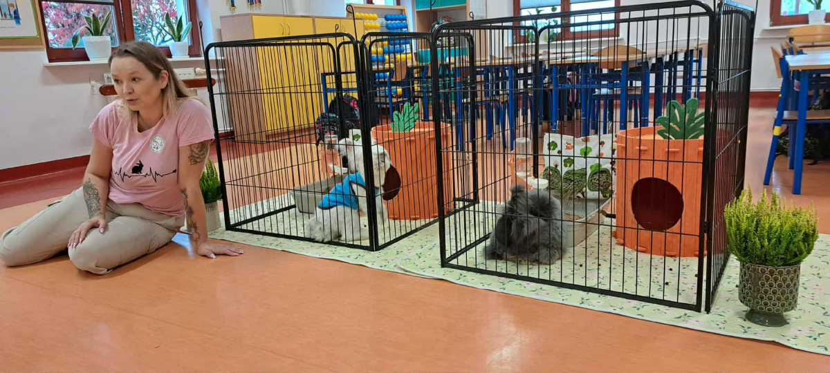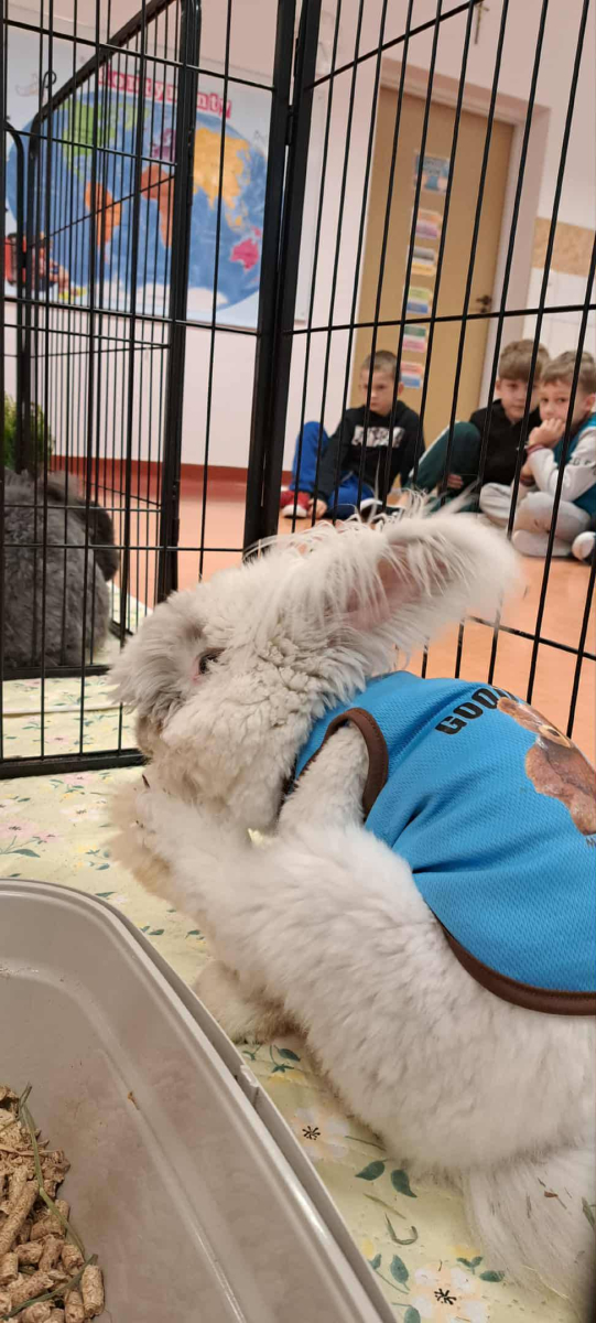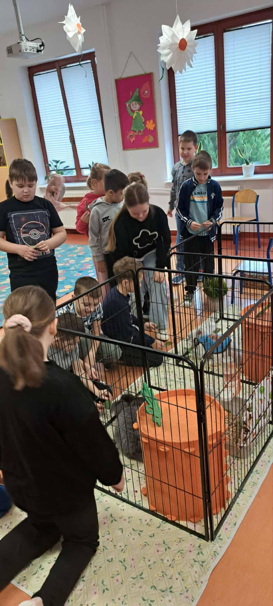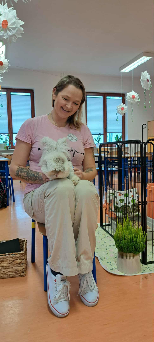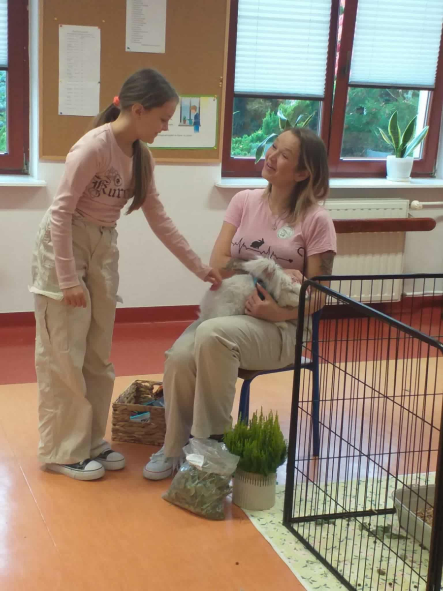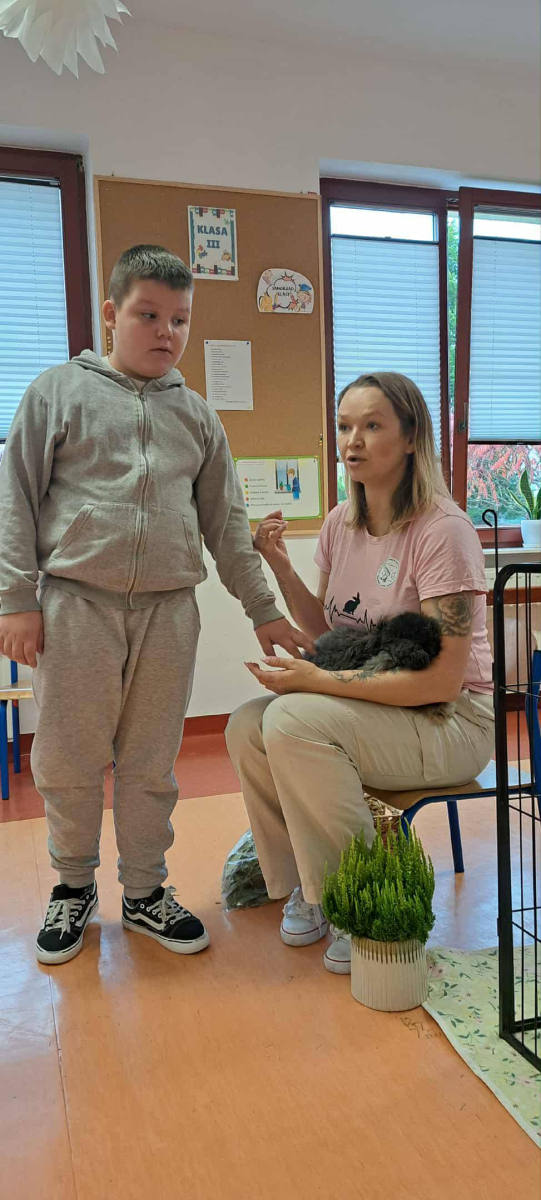 Pani Magdalena zaprezentowała również elementy lagoterapii – terapii z udziałem królików , która wspiera rozwój emocjonalny, uczy empatii i pomaga w wyciszeniu.