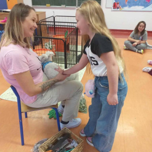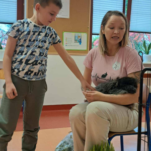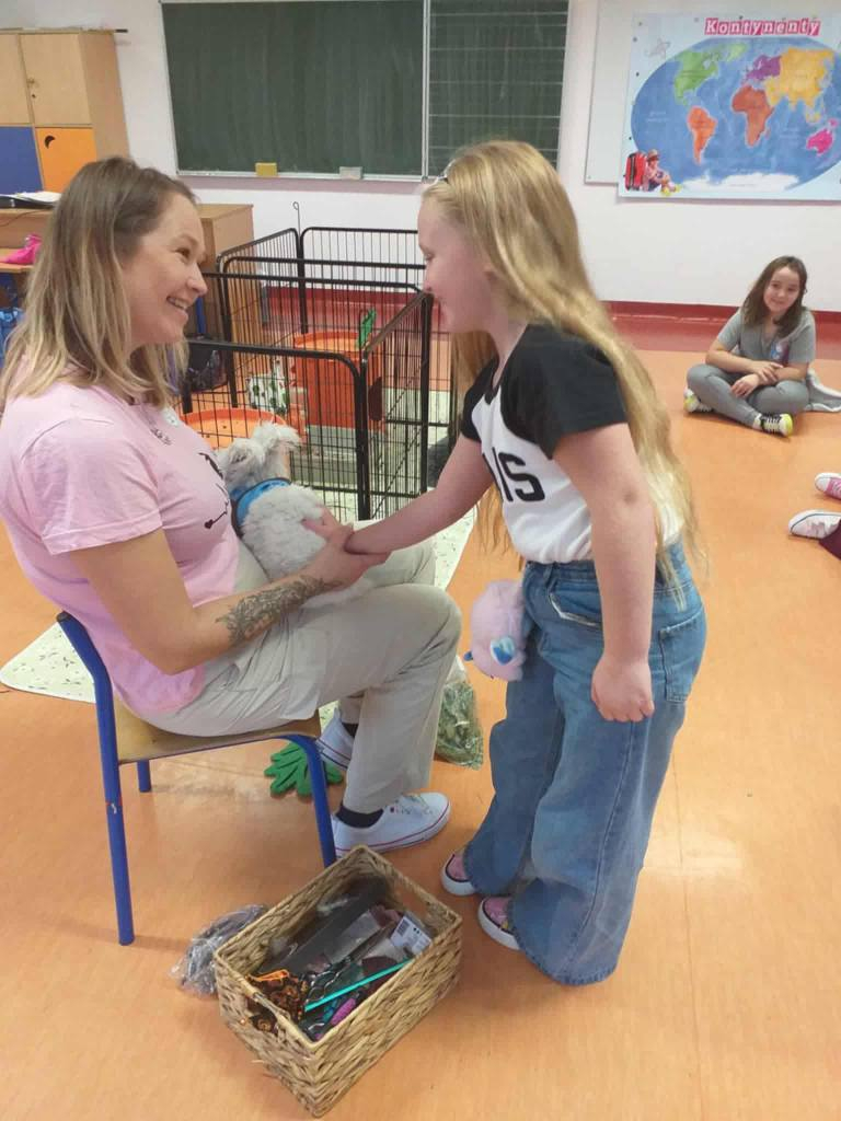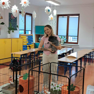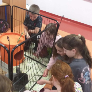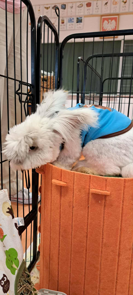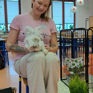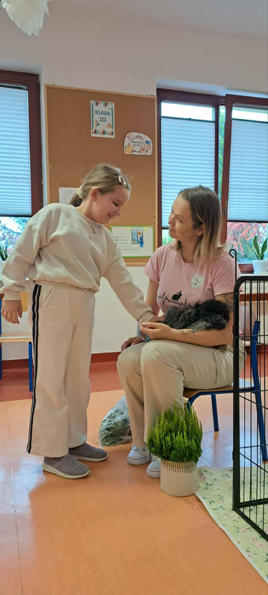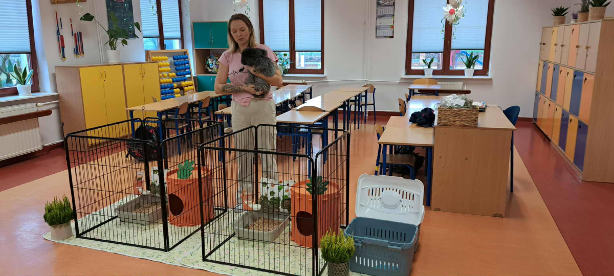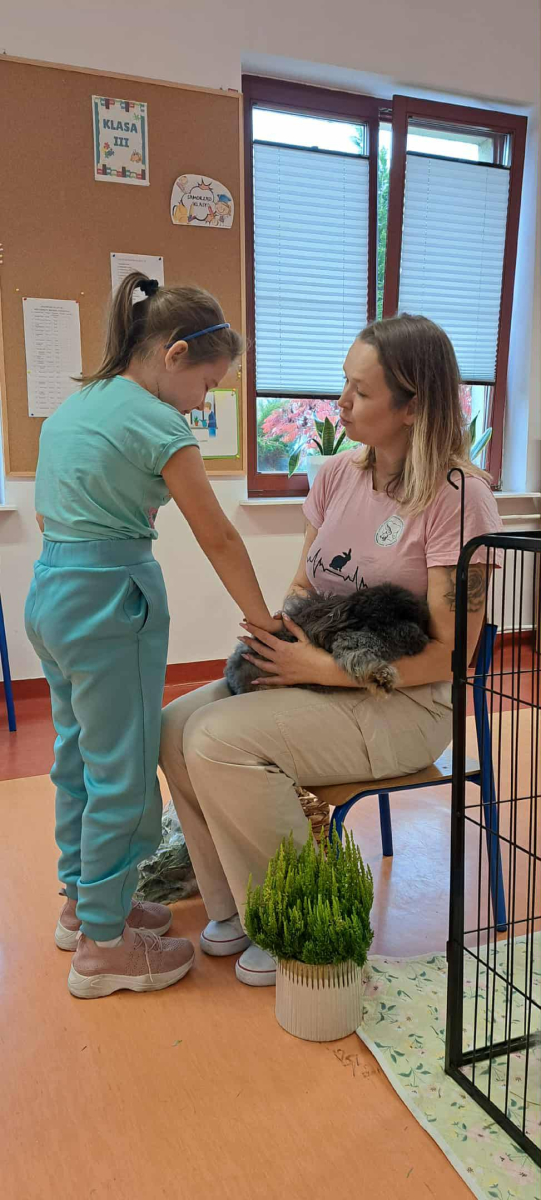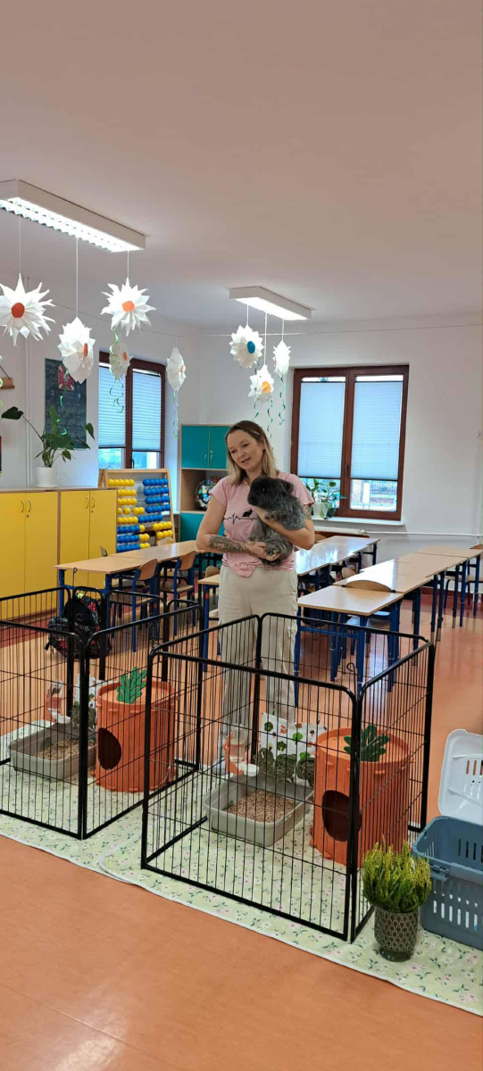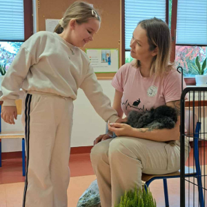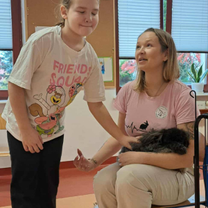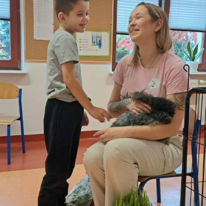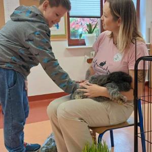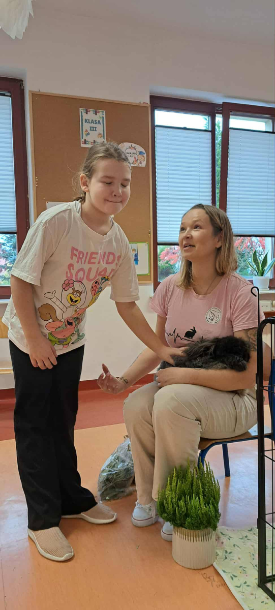 Pani Magdalena zaprezentowała również elementy lagoterapii – terapii z udziałem królików , która wspiera rozwój emocjonalny, uczy empatii i pomaga w wyciszeniu.