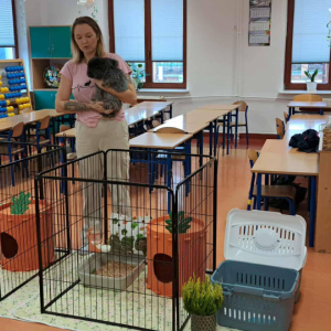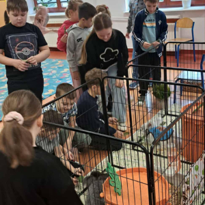 3 listopada naszą szkołę odwiedziła pani Magdalena Jakubik-Cicha, technik weterynarii, wraz ze swoimi uroczymi królikami rasy angora .