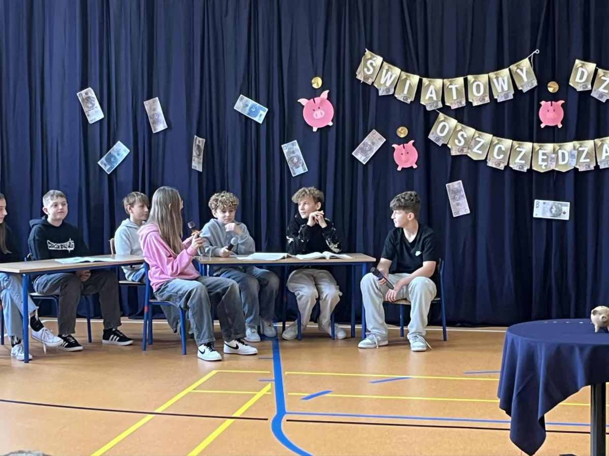30 października w naszej szkole odbył się uroczysty apel z okazji Światowego Dnia Oszczędzania, przygotowany przez opiekunki Szkolnej Kasy Oszczędności – Magdalenę Kornacką i Monikę Kuropatwę – wraz z uczniami klas II i VI.