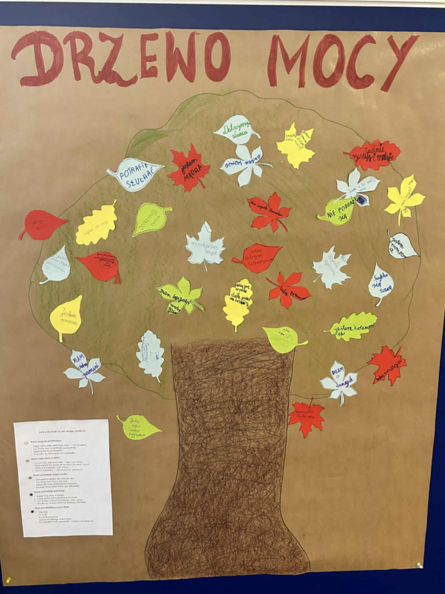 Tydzień Zdrowia Psychicznego pokazał, że rozmowa o emocjach i trudnościach jest ważna, tak jak wspólne spędzanie czasu w szkole. Na zakończenie wszyscy uczniowie mieli okazję napisać swoje mocne strony i umieścić je na Drzewie Mocy!