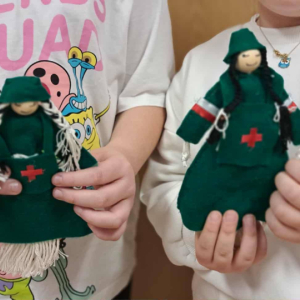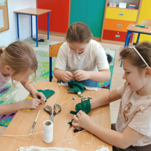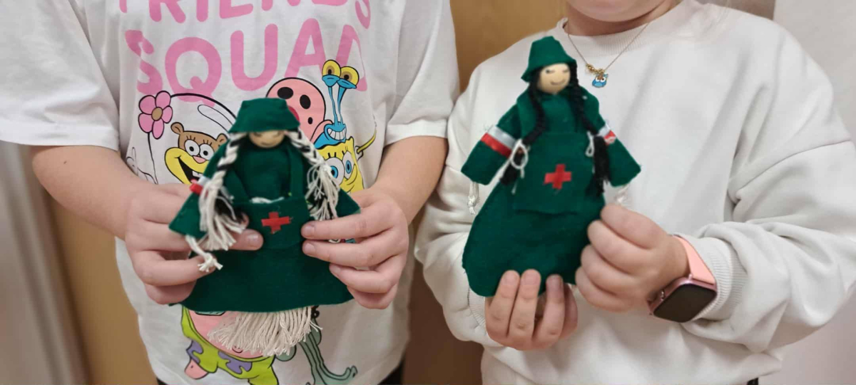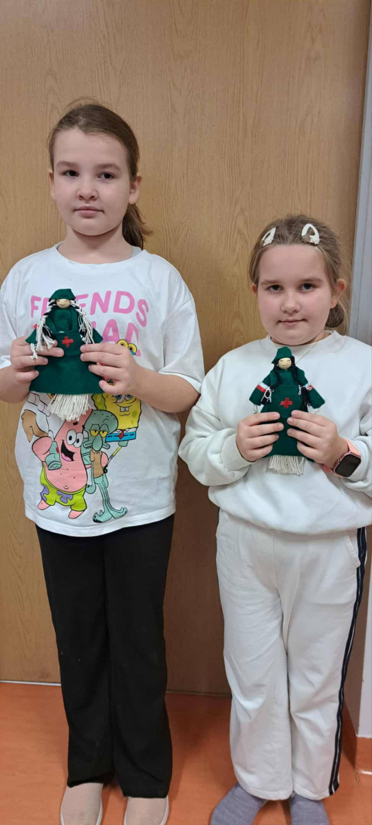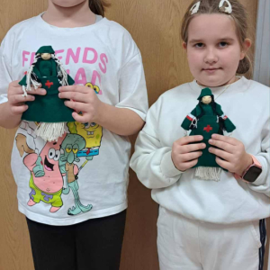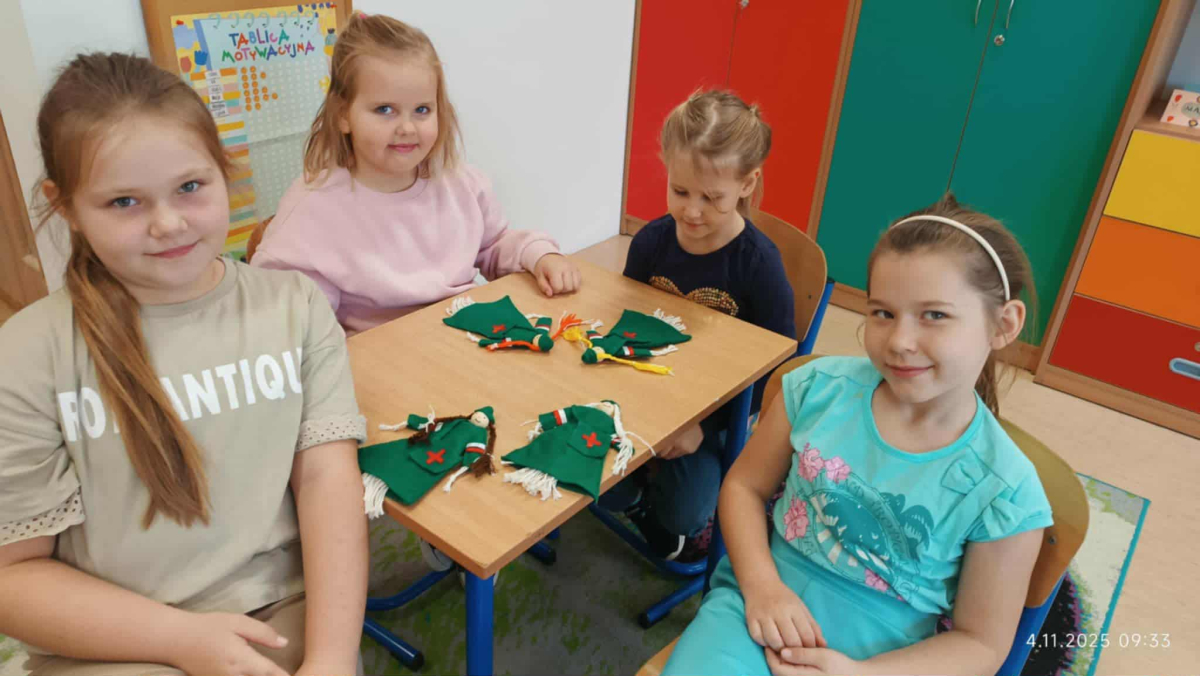W drugiej części zajęć dziewczynki z klas I i II wykonały motanki – tradycyjne laleczki symbolizujące ochronę, dobro i siłę. Tworzenie motanek stało się pięknym nawiązaniem do tematu zajęć, podkreślając znaczenie kobiecej odwagi, troski i ciepła – zarówno w przeszłości, jak i współcześnie.