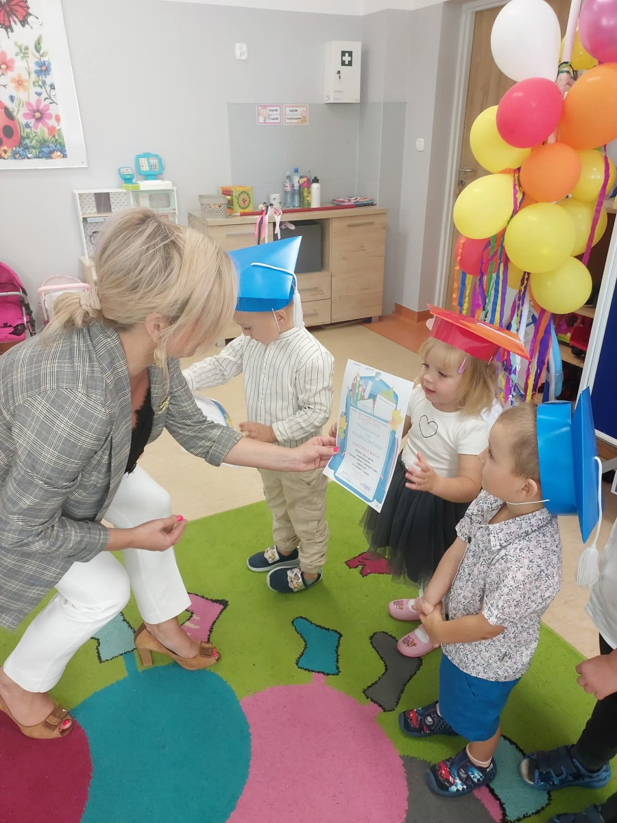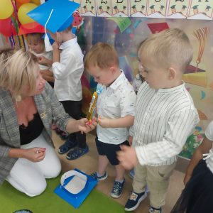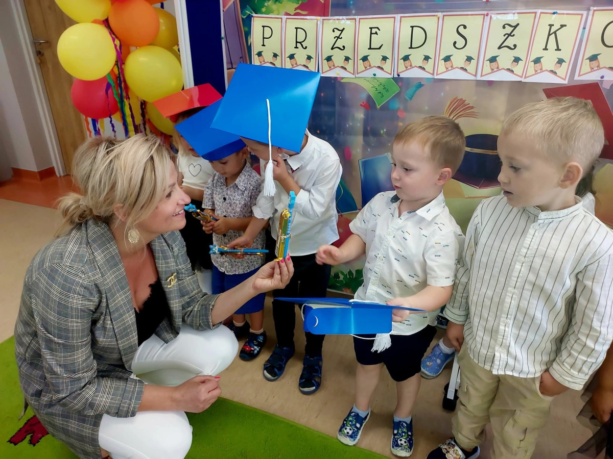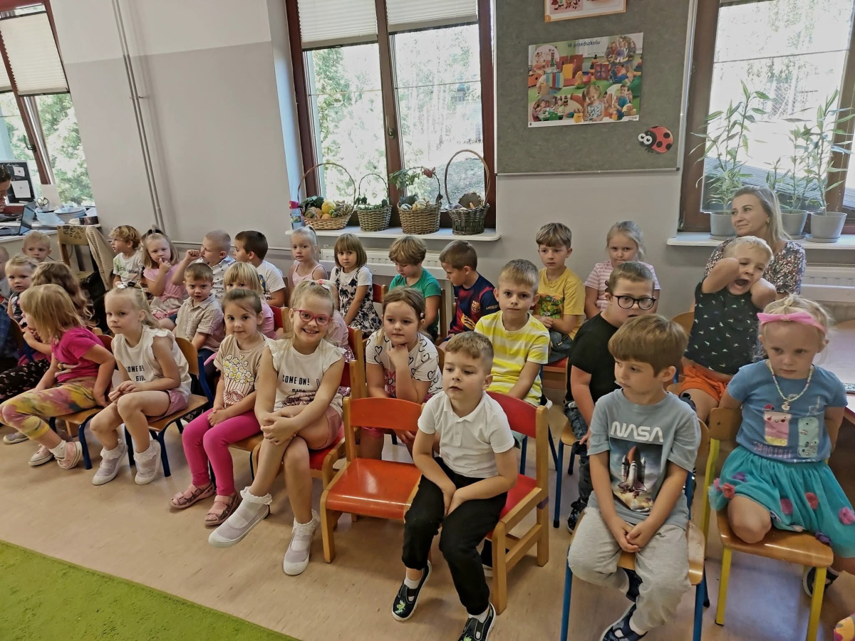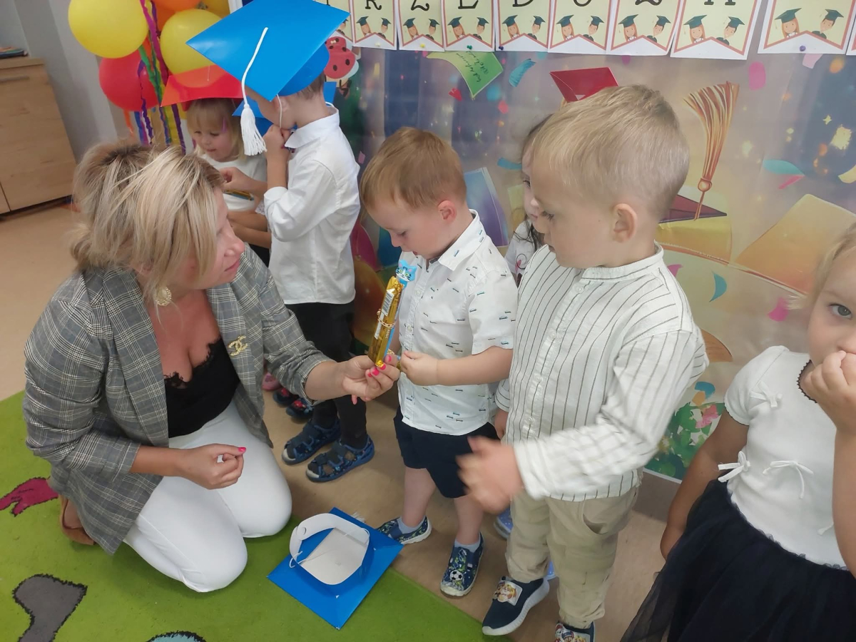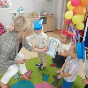 22 września br. w grupie Biedroneczek odbyło się Uroczyste Pasowanie na Przedszkolaka. Mali artyści pięknie zaprezentowali swoje umiejętności, złożyli przysięgę, a następnie zostali oficjalnie przyjęci do grona przedszkolaków. Pasowania dzieci dokonała pani dyrektor Karolina Trych. W tym ważnym wydarzeniu towarzyszyły im starsze koleżanki i koledzy z grupy Tygrysków, którzy z radością oklaskiwali wydarzenie. Pasowanie odbyło się w wyjątkowym dniu - Dniu Przedszkolaka - co sprawiło, że uroczystość była jeszcze bardziej wyjątkowa..